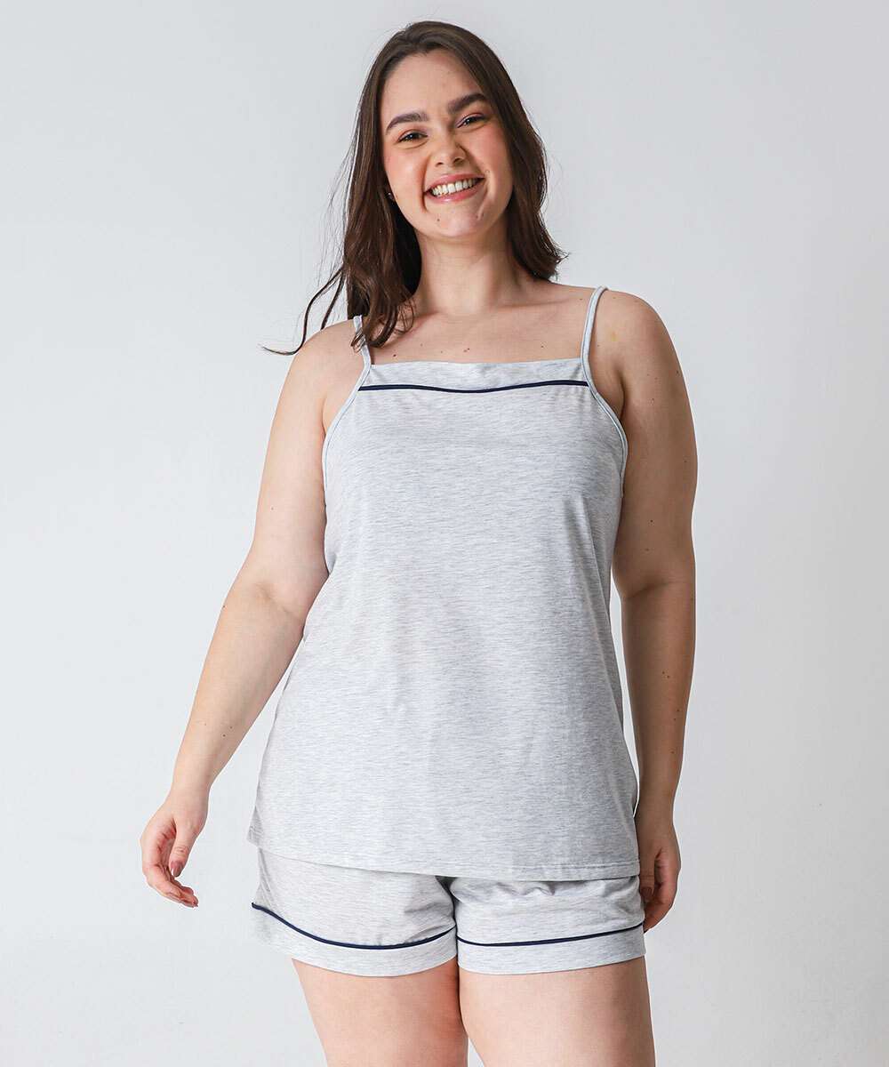 Pijama Plus Size Feminino Alças Finas Marisa Cinza