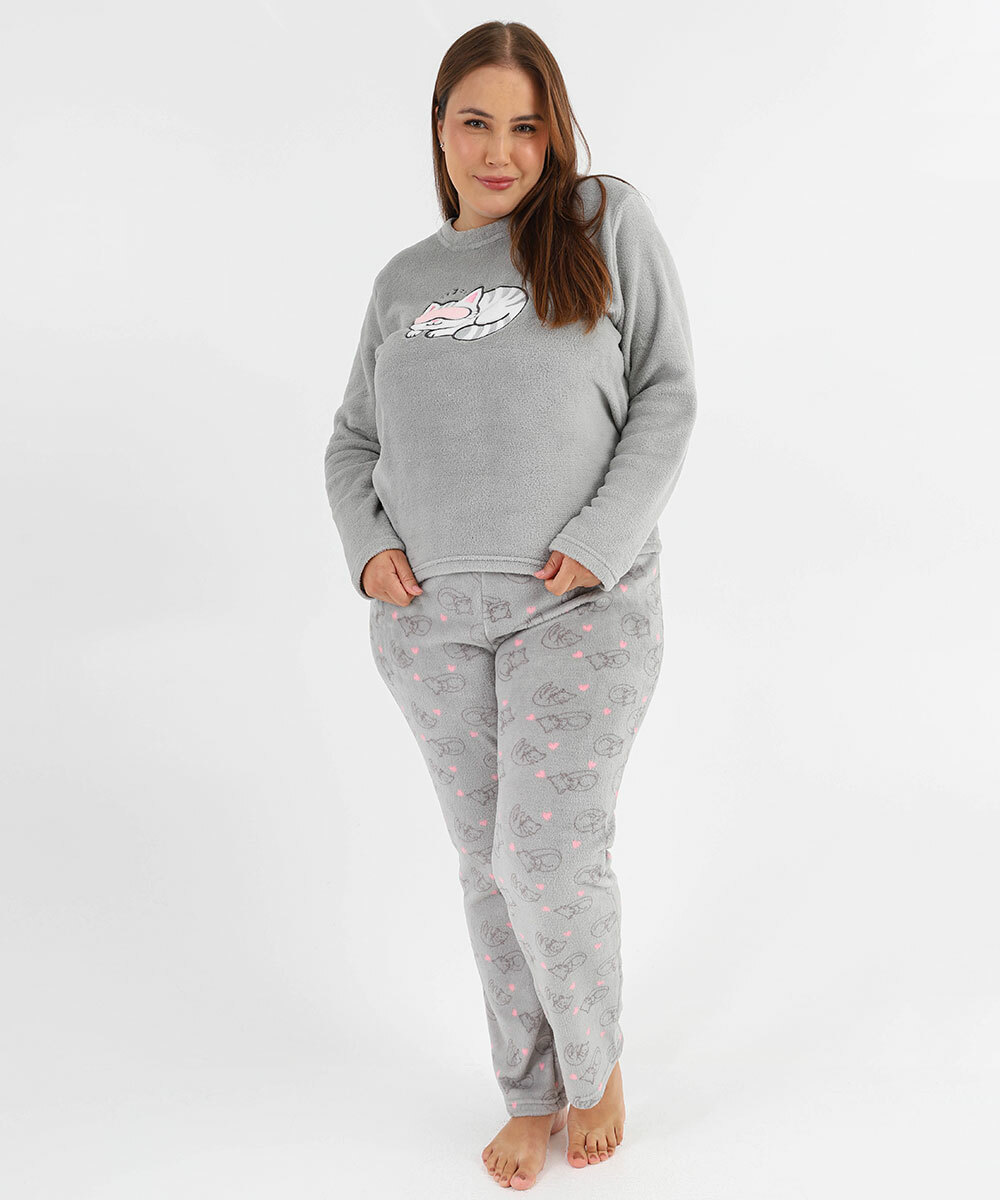 Pijama Plus Size Feminino Gato Marisa Cinza