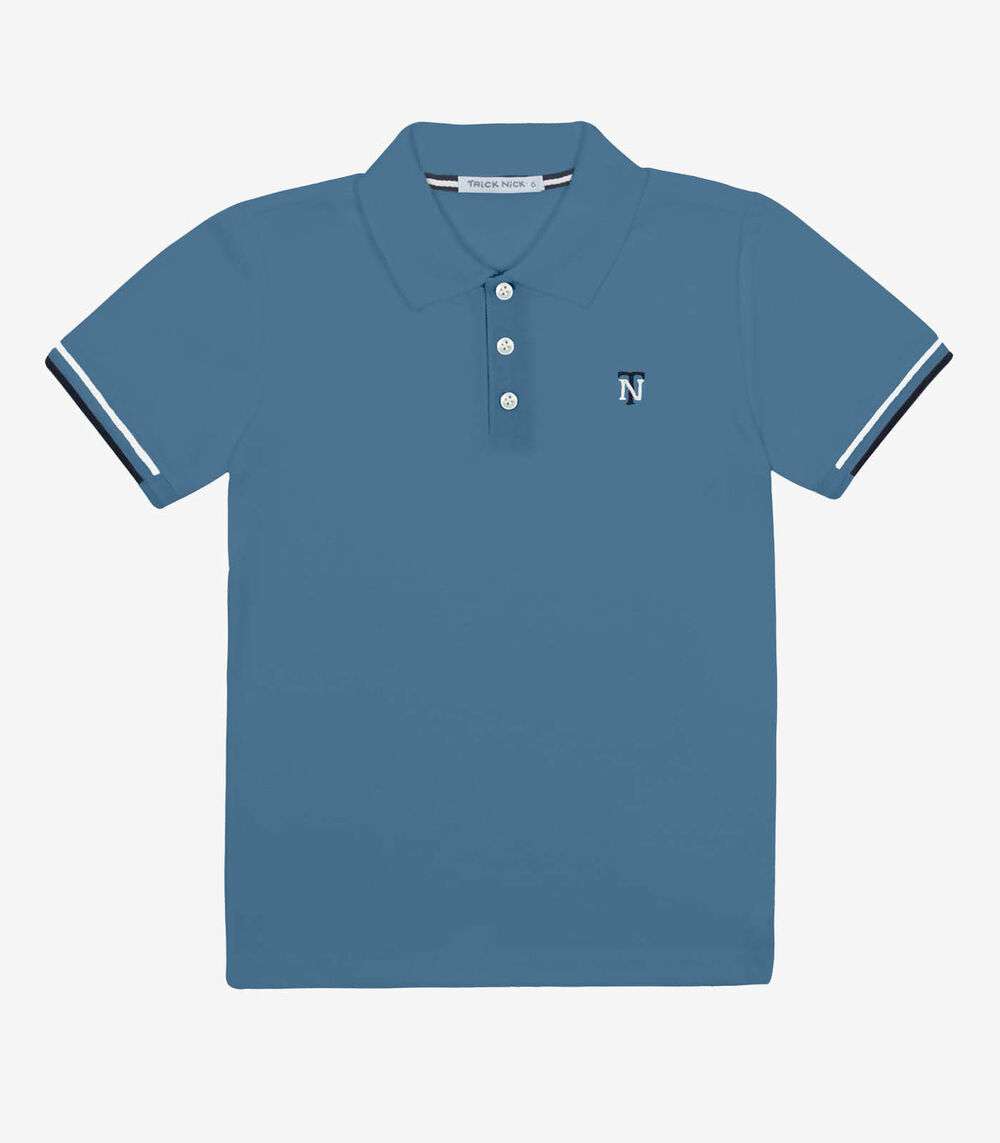 Polo Infantil Manga Curta Piquet Trick Nick Azul