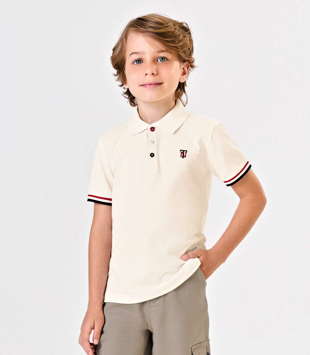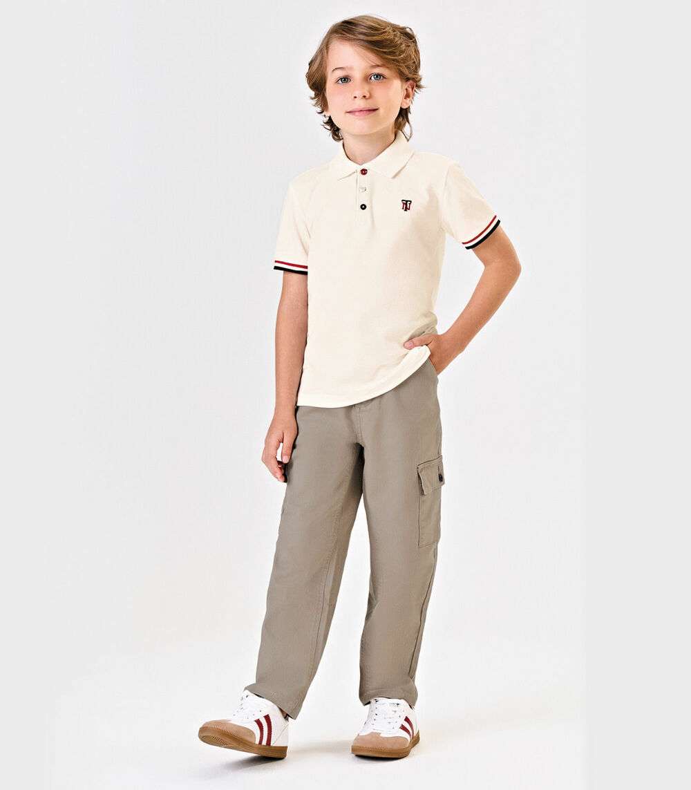 Polo Infantil Manga Curta Piquet Trick Nick Bege
