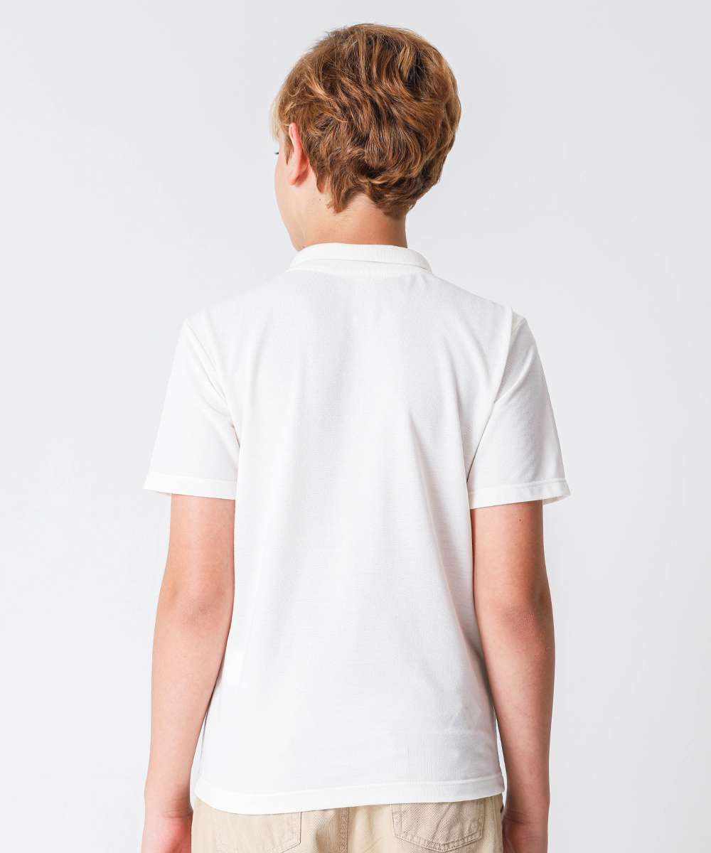 Polo Juvenil Manga Curta Bordado MR Tam 10 a 16 Off White