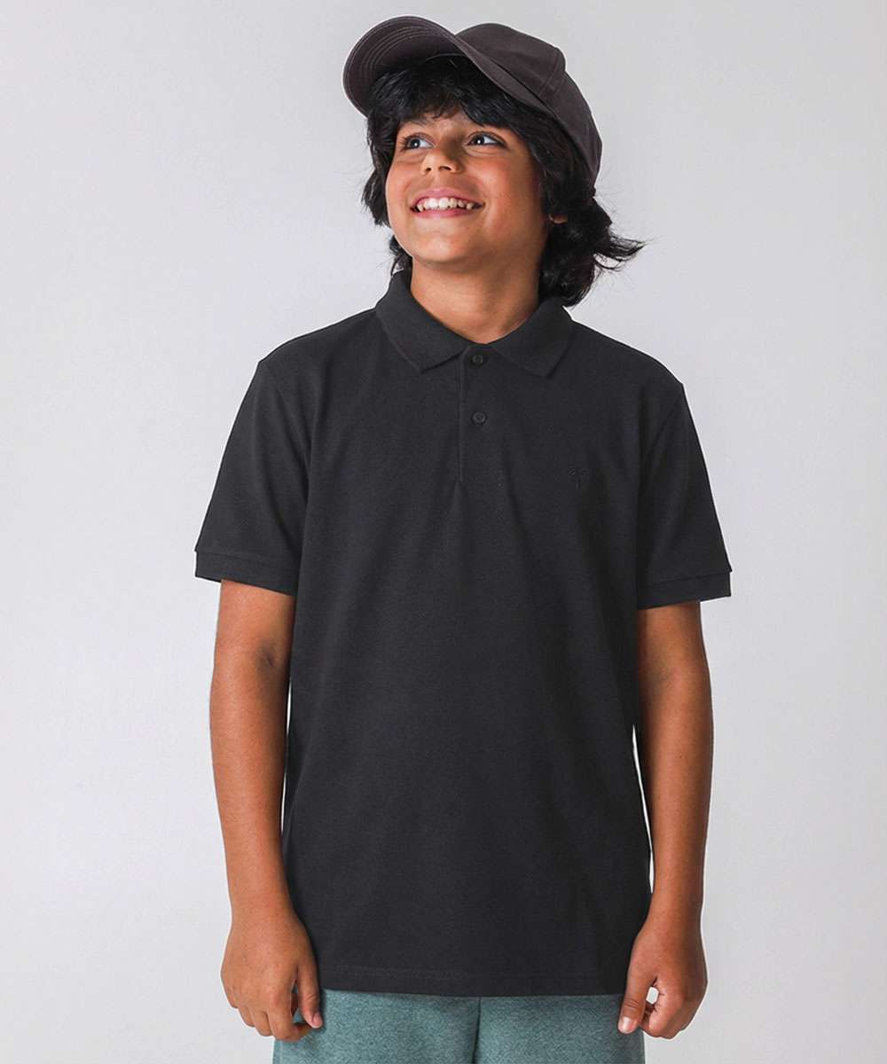 Polo Juvenil Manga Curta MR Tam 10 a 16 Preto