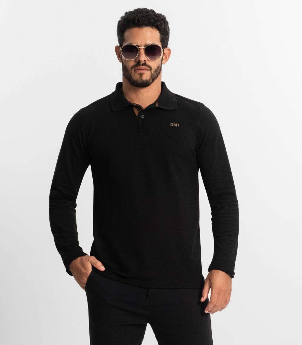 Polo Manga Longa Masculina Diametro Preto