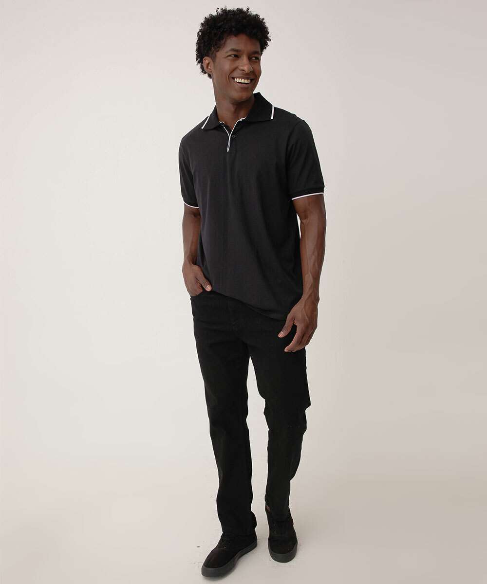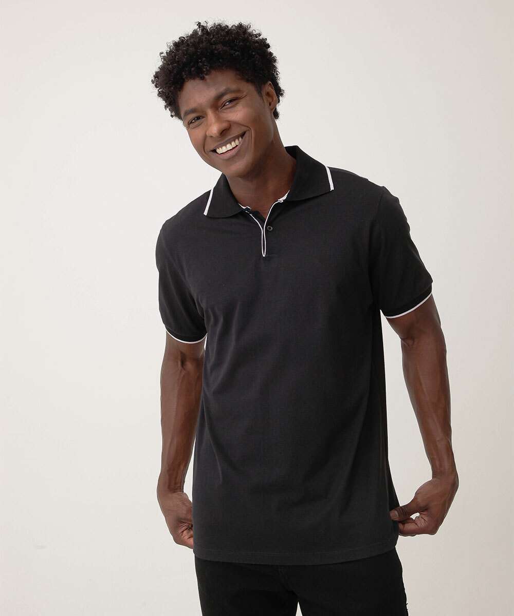 Polo Masculina Manga Curta Marisa Preto