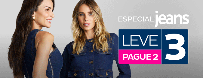 Aproveite a Promoção Leve 3 Pague 2 Jeans. Na compra de 3 peças Jeans, obrigatoriamente a de menor valor é grátis! A promoção é válida para todos os produtos jeans, exceto calçados e acessórios. Você Ainda Pode Realizar a Troca do Seu Produto Em Qualquer Uma De Nossas Lojas Espalhadas Pelo Brasil. Compre e Retire o Seu Pedido Nas Nossas Lojas da Paulista N°412, Shopping Metrô Boulevard Tatuapé, Shopping Leste Aricanduva, Lapa, Shopping Metrô Itaquera, Santo Amaro N°62, Osasco Plaza Shop, São Bernardo do Campo N°900 e Maxi Shop. Jundiaí.