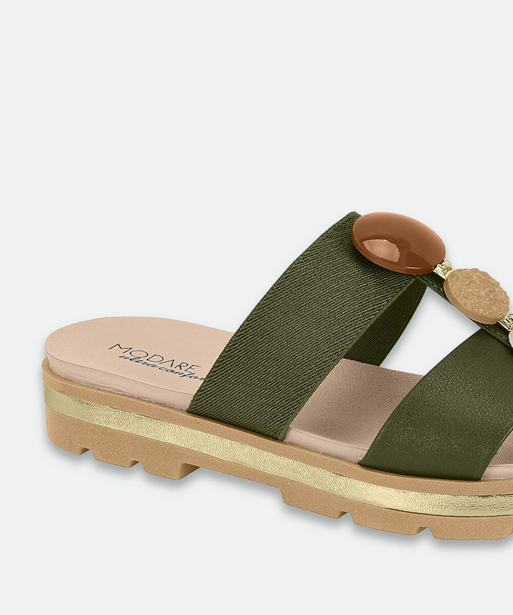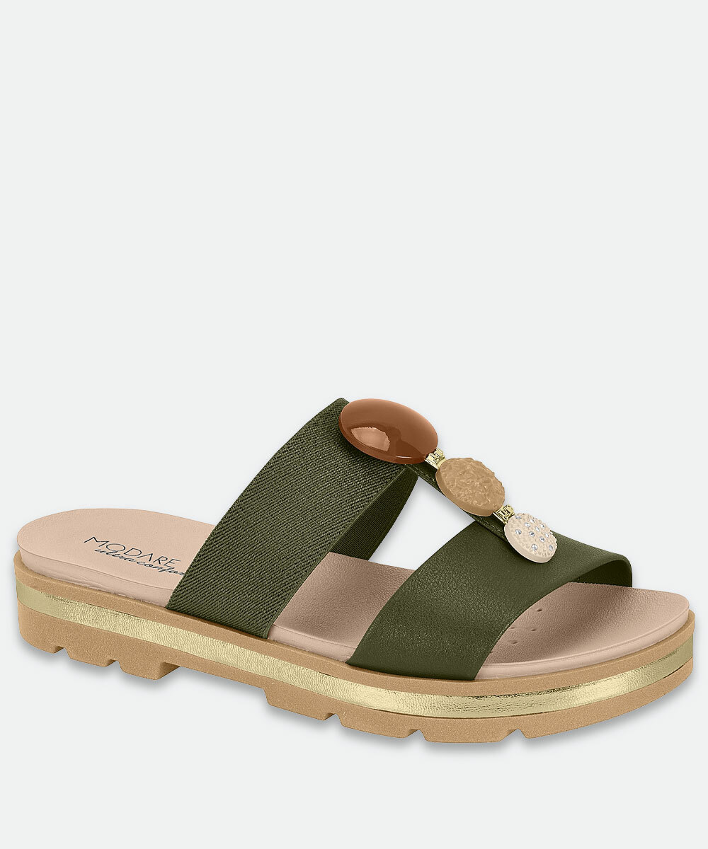 Rasteirinha Feminina Pedras Sintéticas Modare Verde