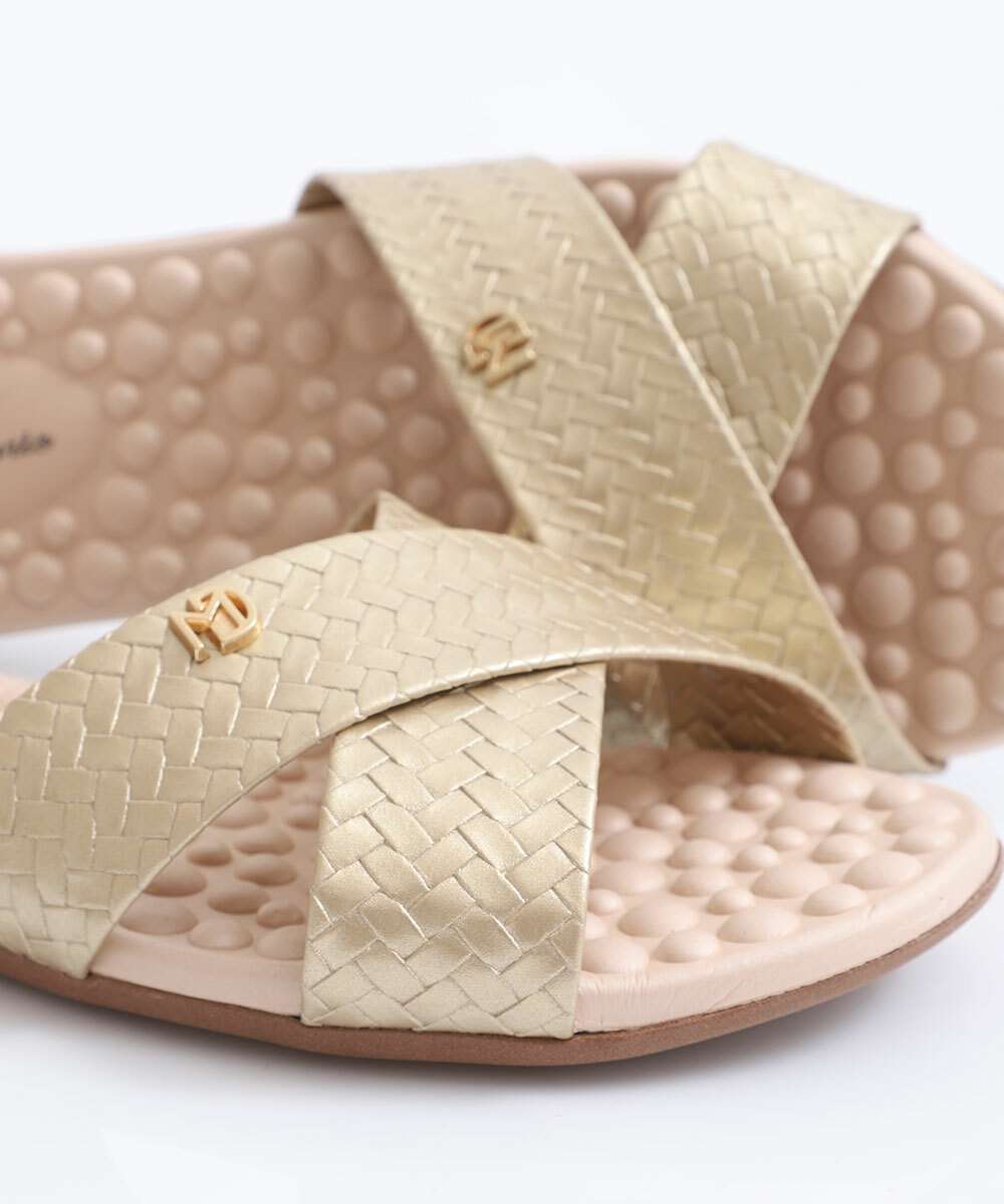 Rasteirinha Feminina Textura Modare Dourada