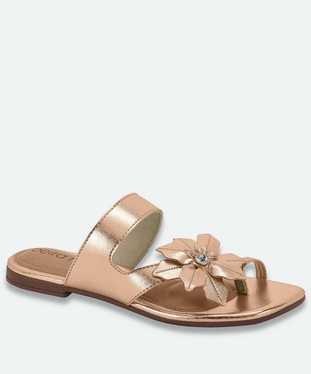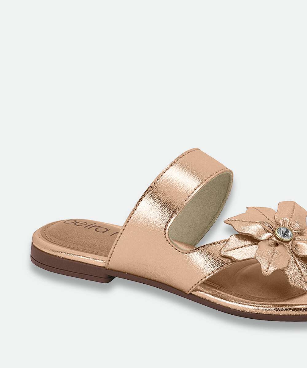 Rasteirinha Feminina Tiras Metalizada Beira Rio Rosê