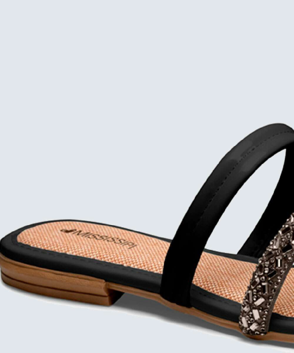 Rasteirinha Feminina Tiras Pedraria Mississipi Q7271