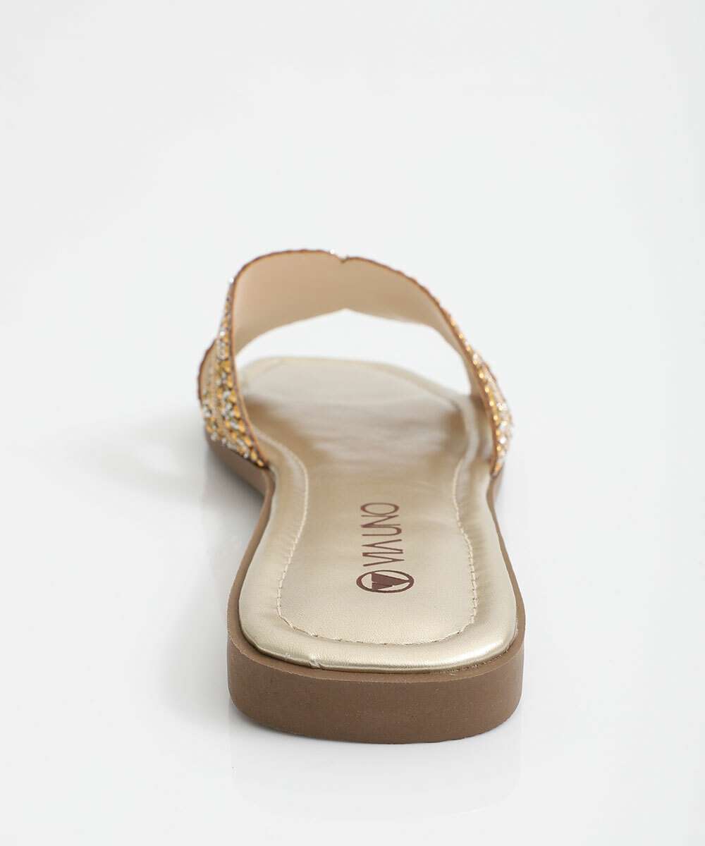 Rasteirinha Feminina Tiras Strass Beira Rio Dourado