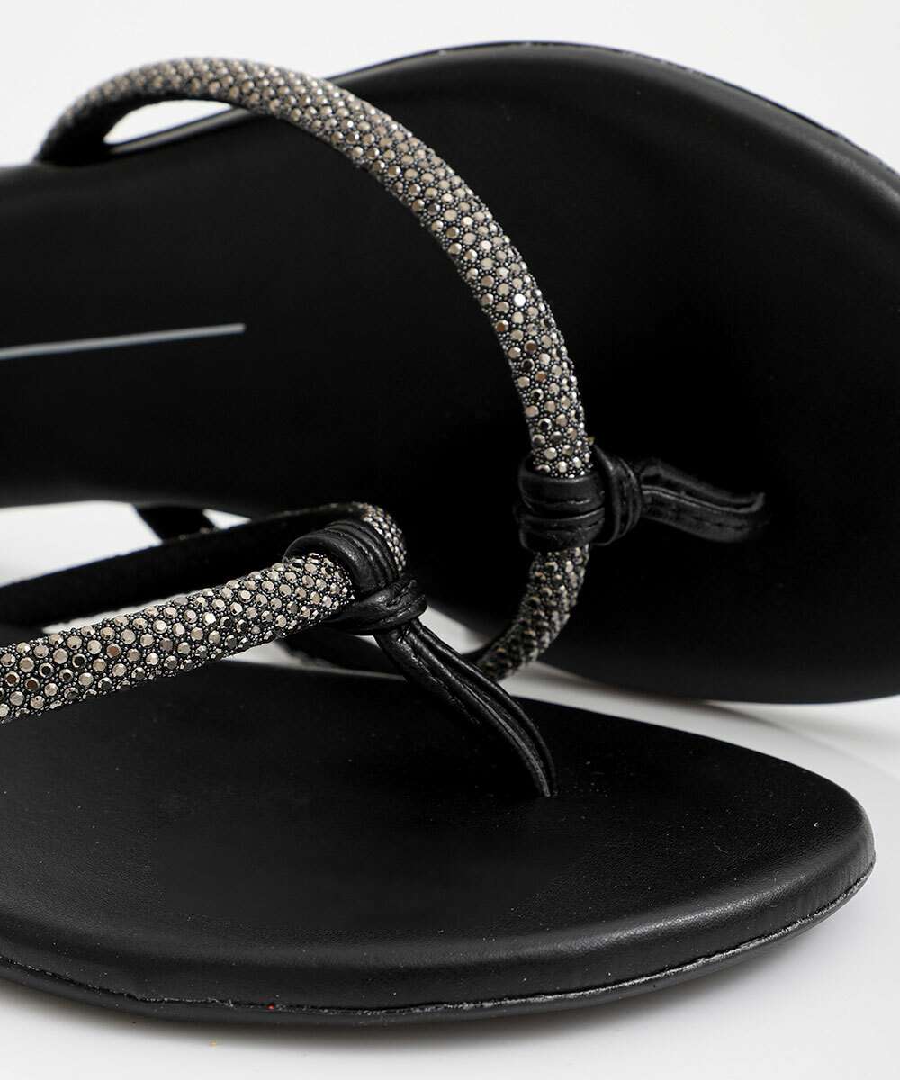 Rasteirinha Feminina Tiras Strass Moleca Preto