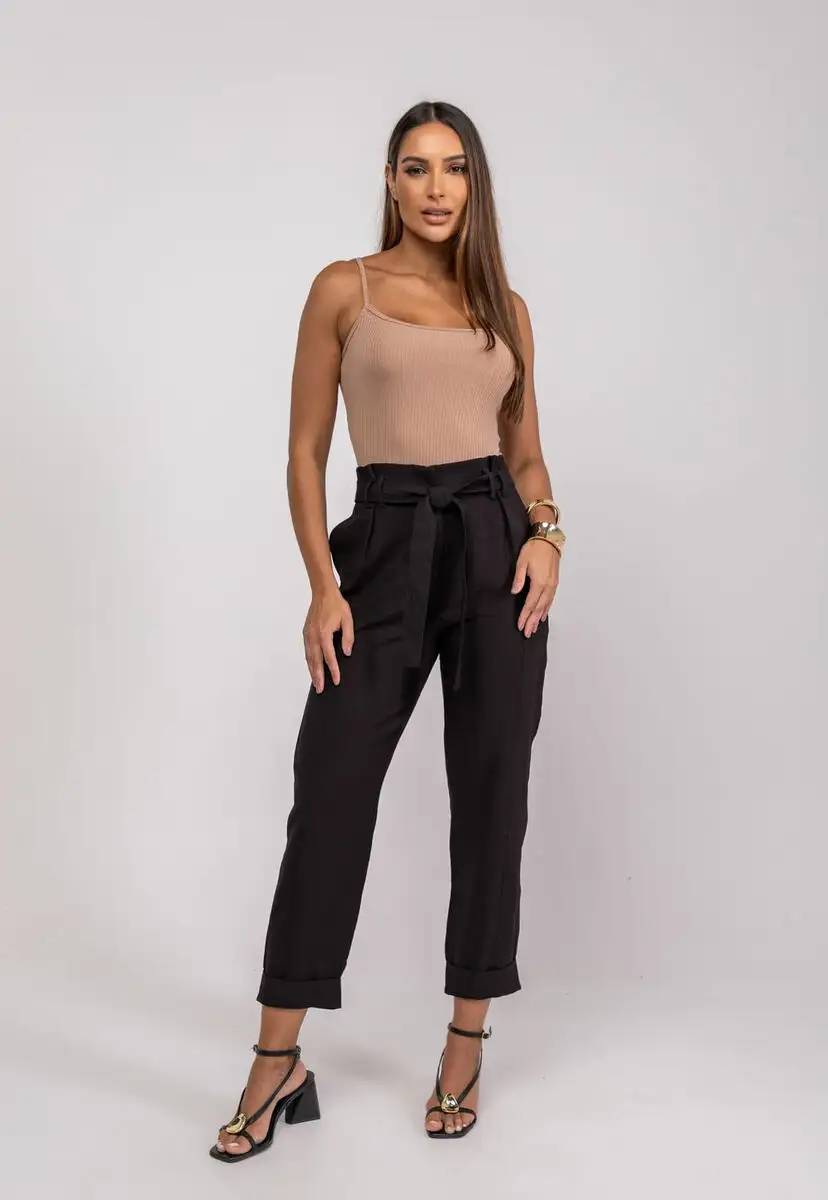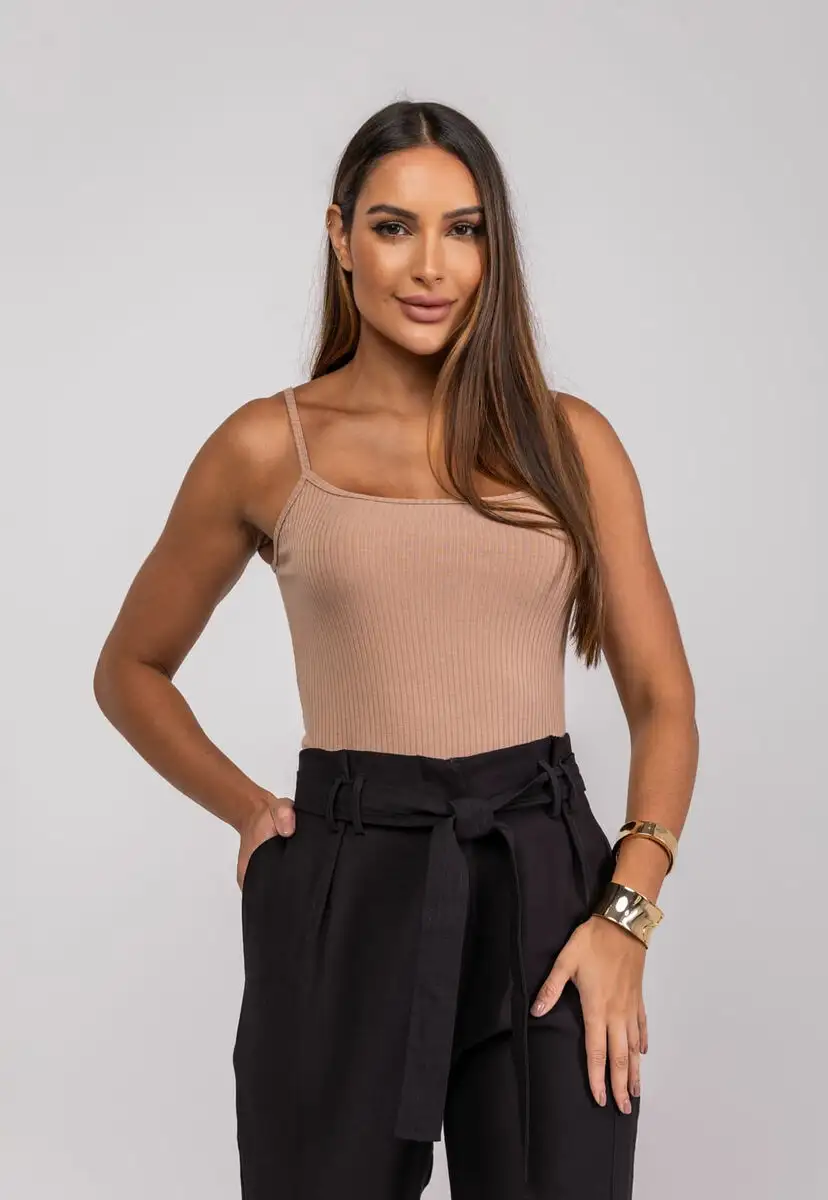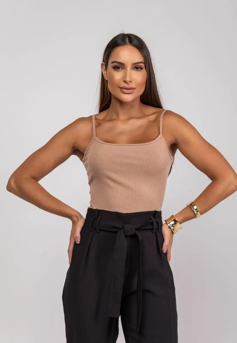Regata Alcinha Malha Canelada Marrom Salvatore Fashion