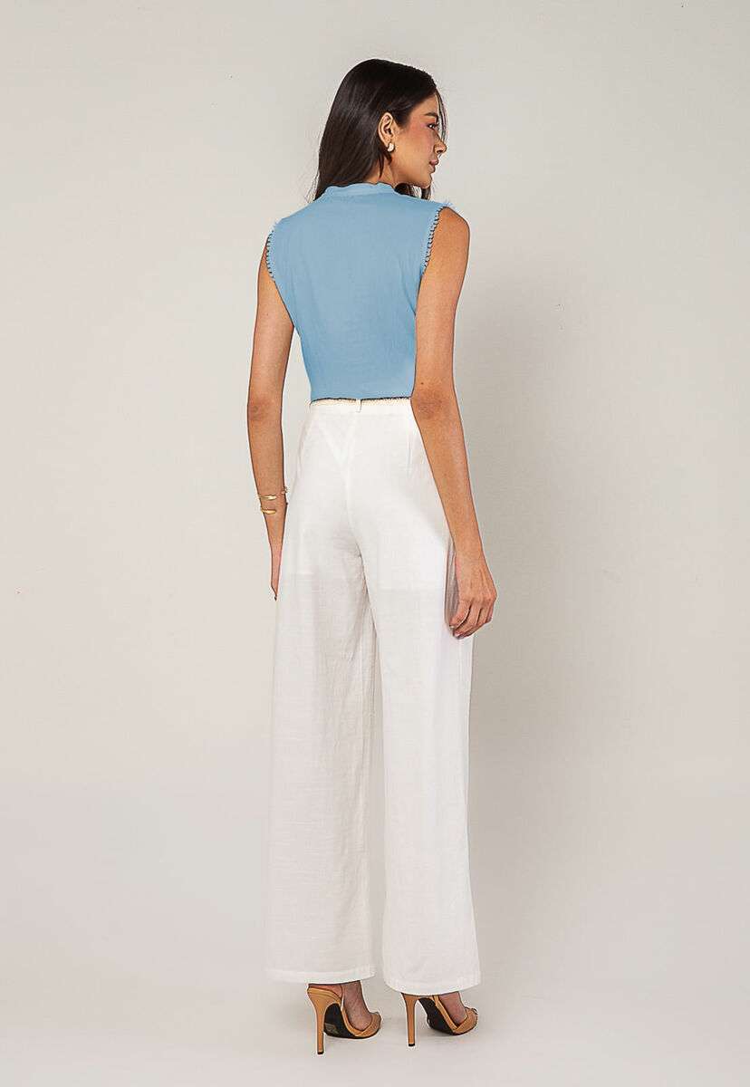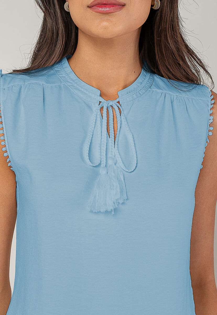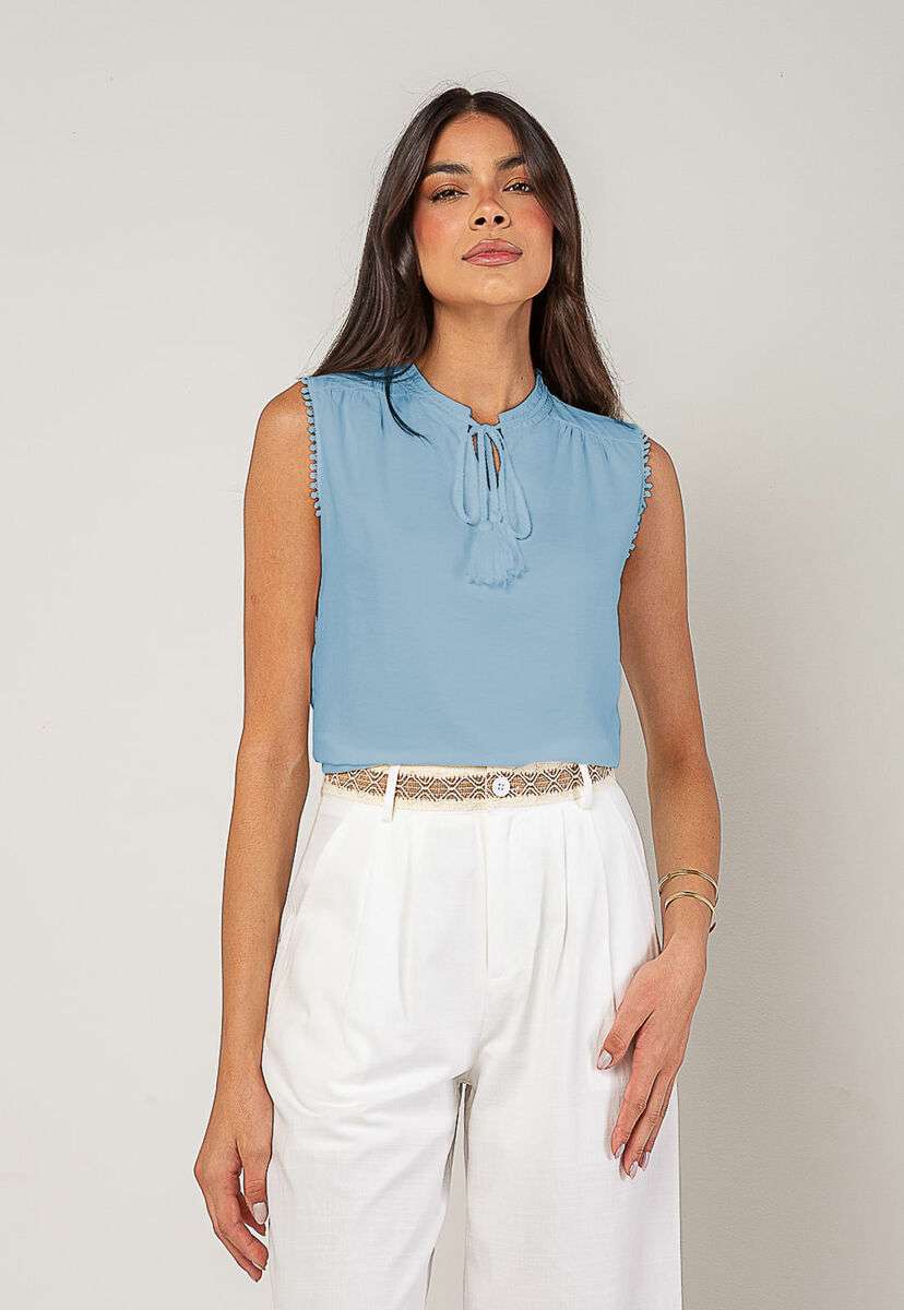 Regata Alfaiataria Com Amarração E Detalhe de Pompons Azul Salvatore