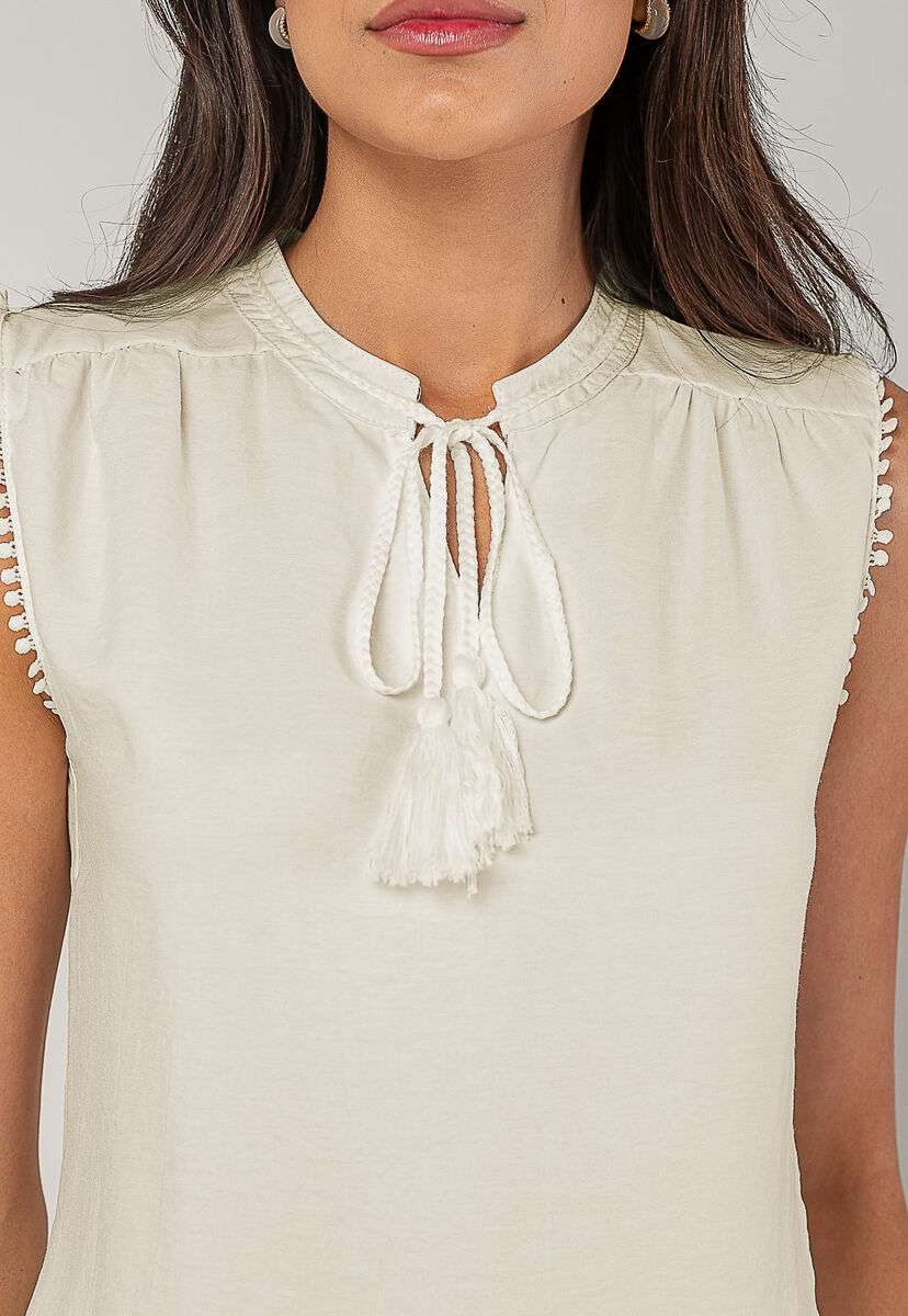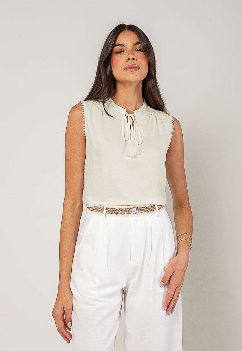 Regata Alfaiataria Com Amarração E Detalhe de Pompons Marfim Salvatore