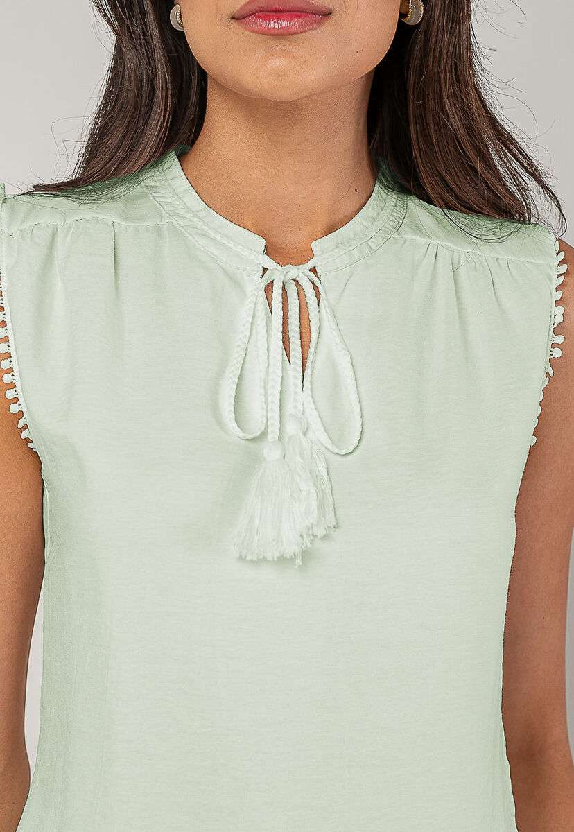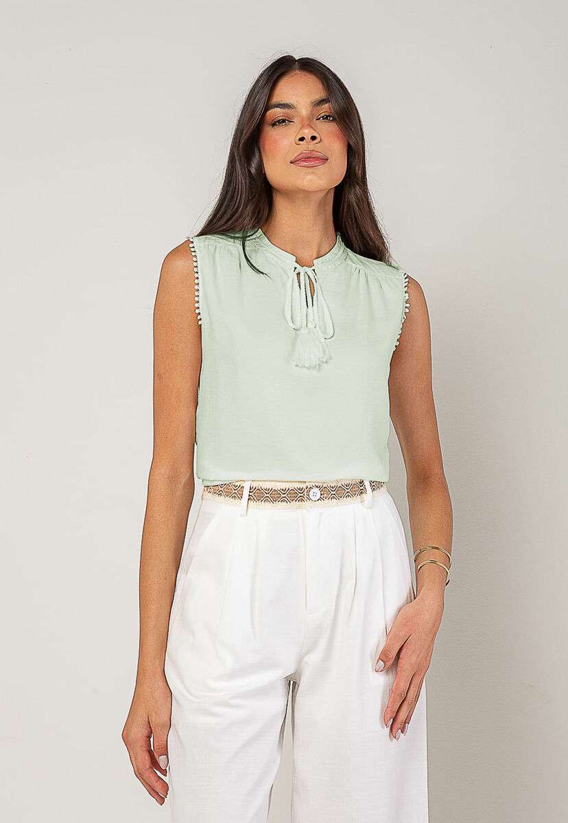 Regata Alfaiataria Com Amarração E Detalhe de Pompons Verde Salvatore