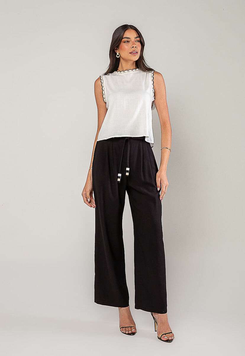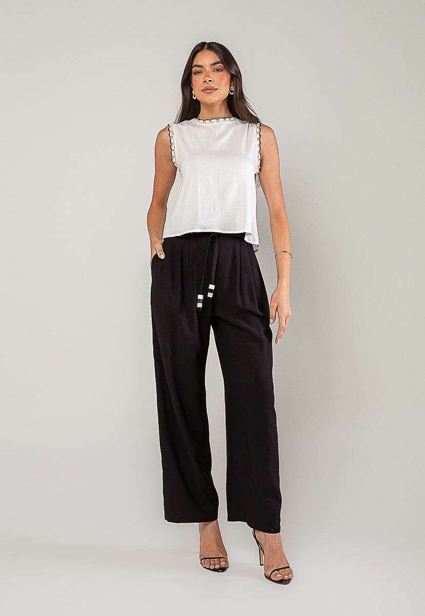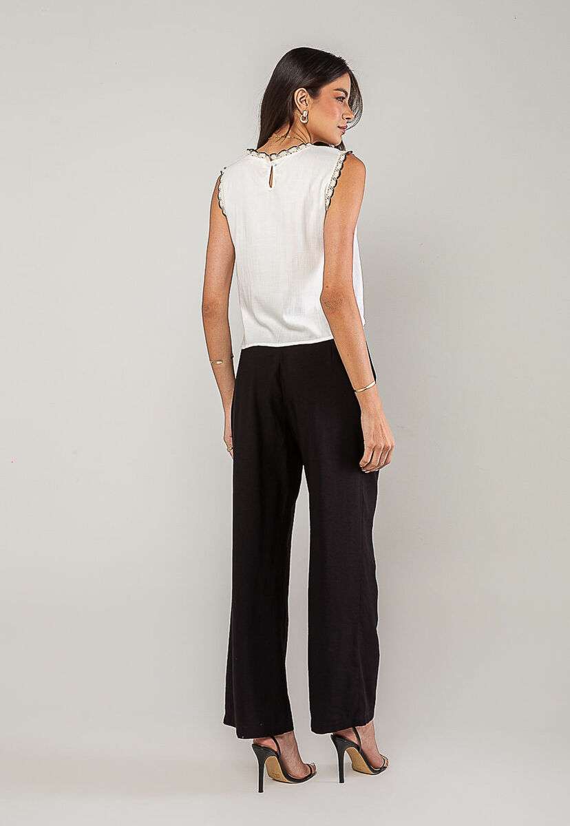 Regata Alfaiataria Com Renda nas Cavas E Gola Branco Salvatore