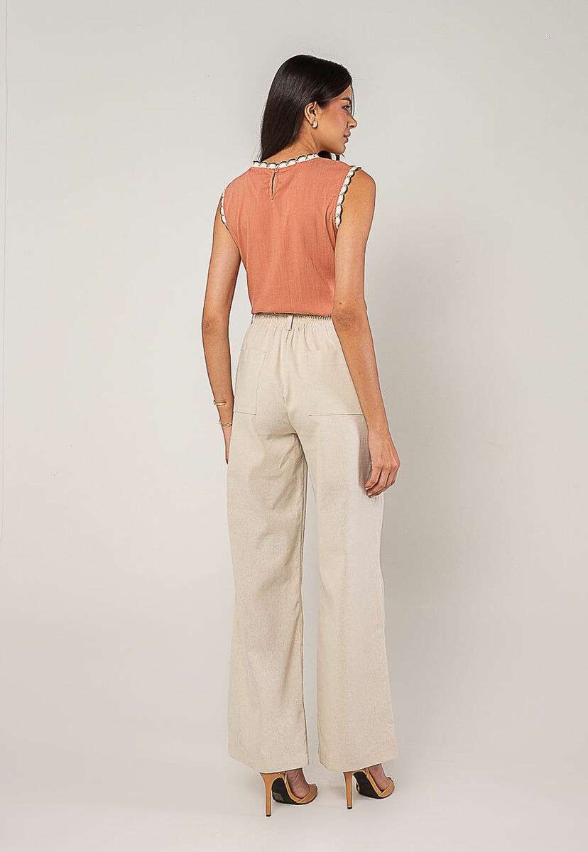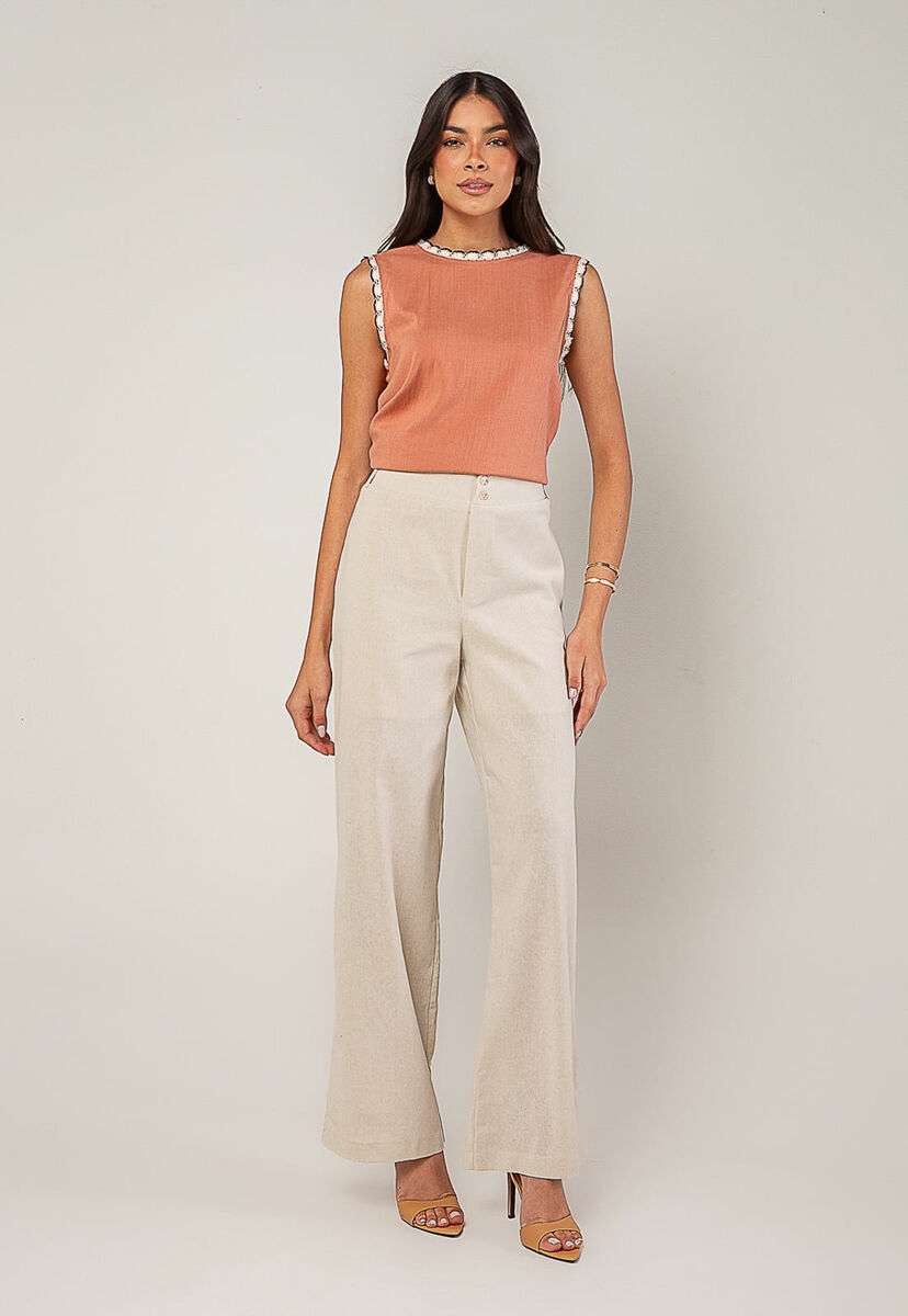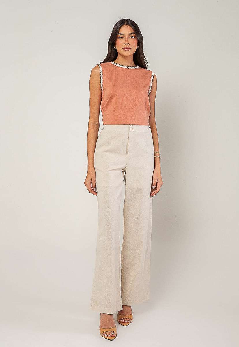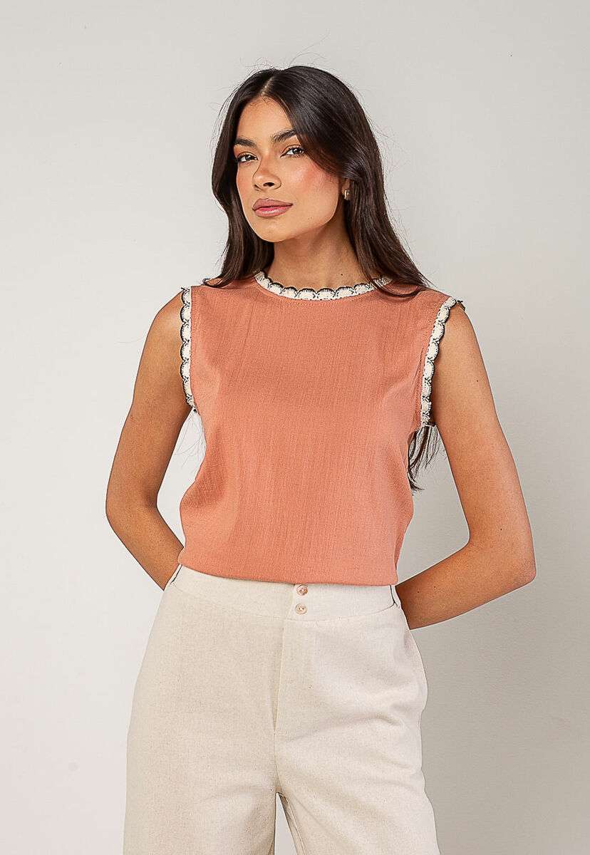 Regata Alfaiataria Com Renda nas Cavas E Gola Rose Salvatore