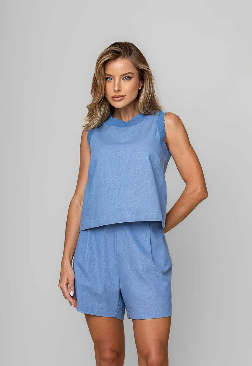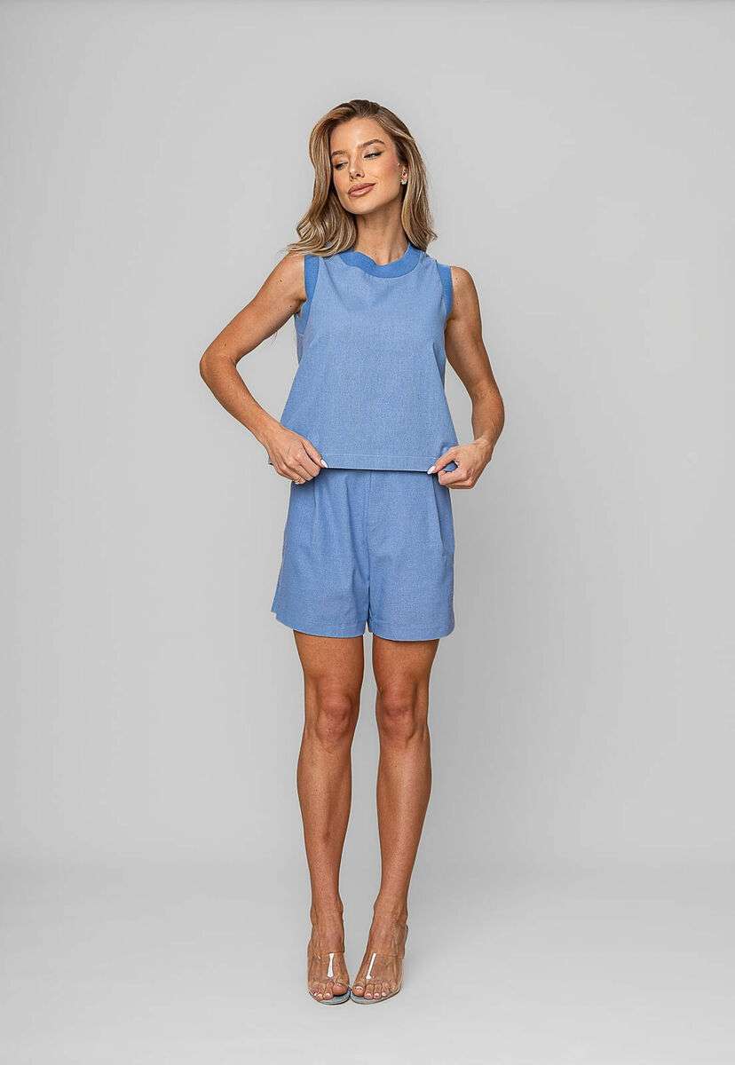 Regata Alfaiataria Gola Ribana Azul Salvatore