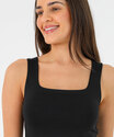 Detalhes: regata feminina preta, regata básica feminina, regata elegante, regata preta versátil, moda feminina básica, regata para dia a dia, regata feminina moderna