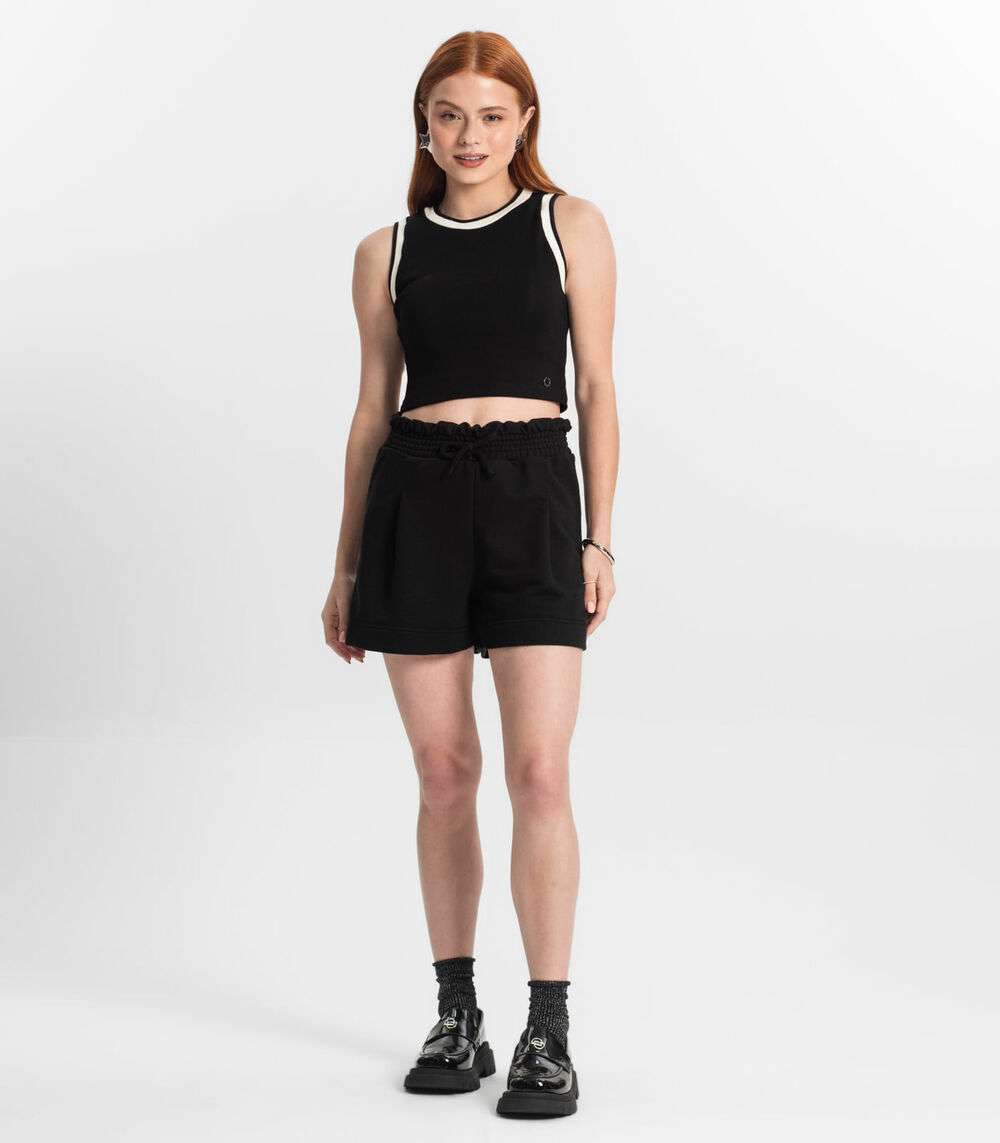 Regata Cropped Feminina Em Ribana Minty Preto