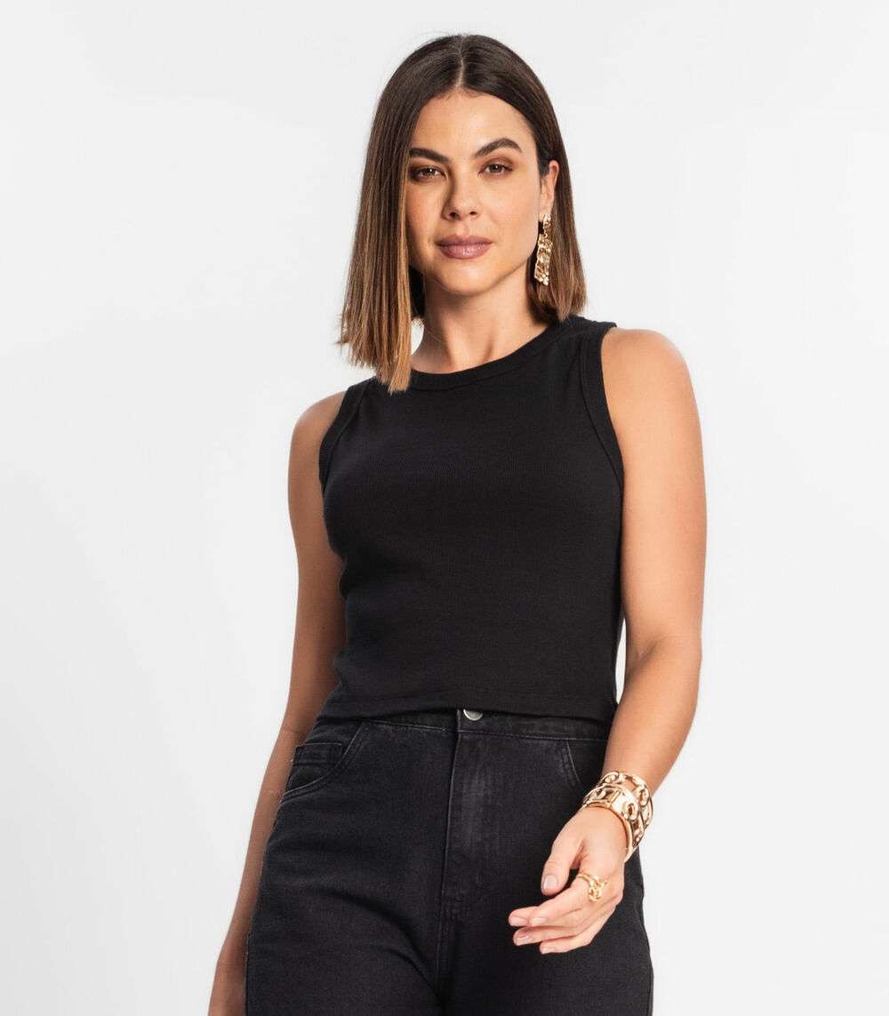 Regata Cropped Feminina Ribana Rovitex Preto