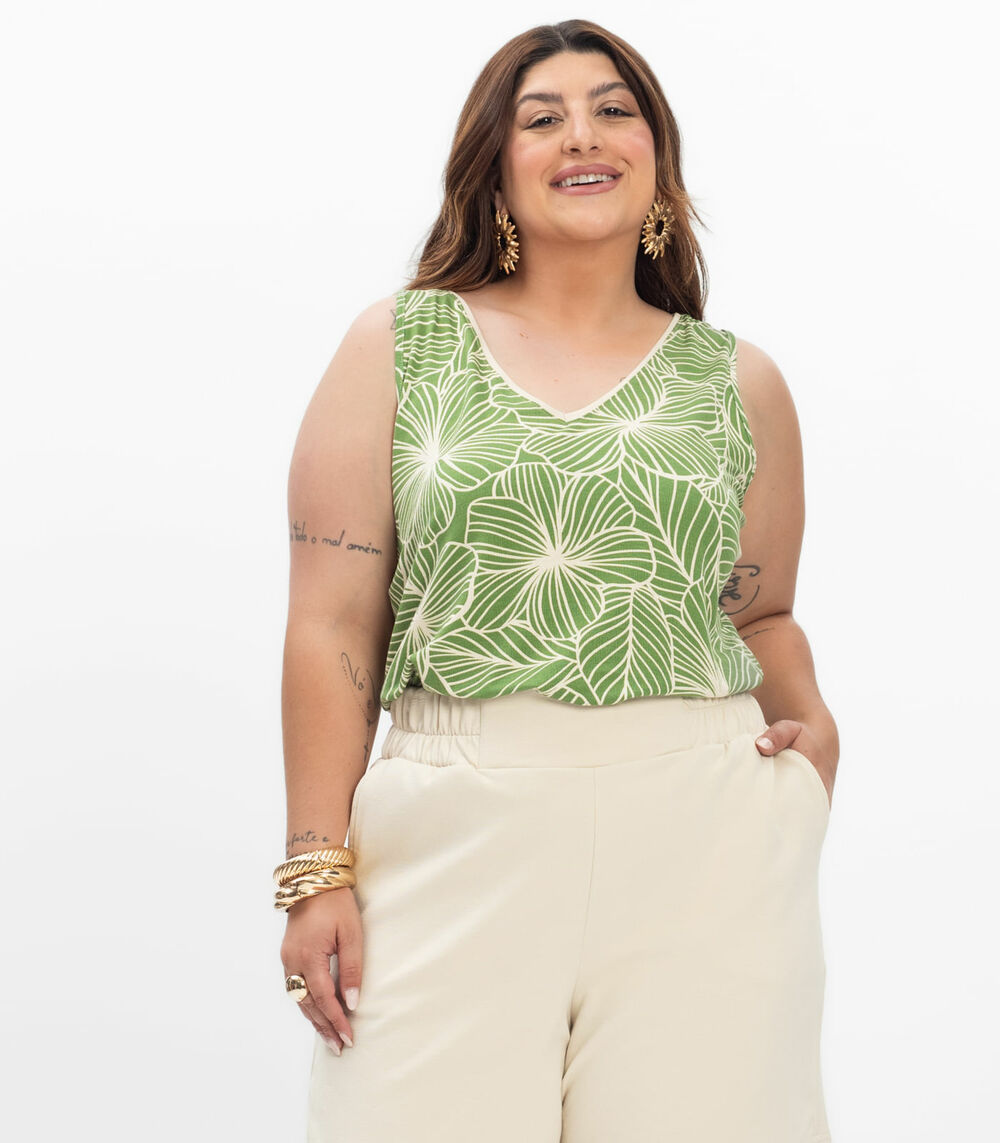 Regata em Viscose Feminina Plus Size Secret Glam Verde