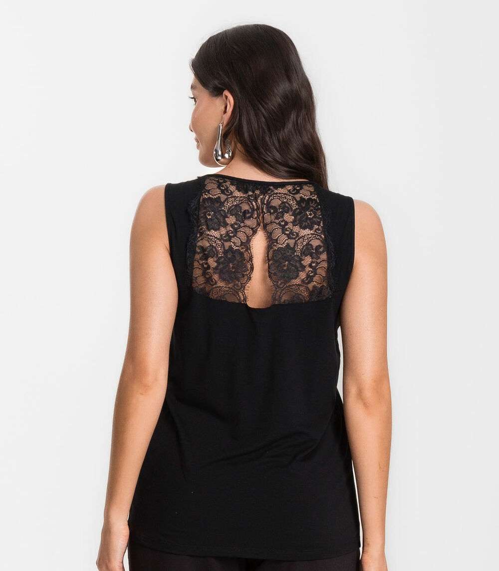Regata Feminina Com Renda Infinita Cor Preto