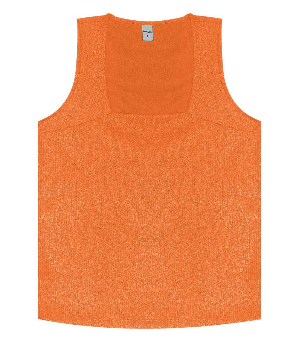 Regata Feminina Em Ribana Canelada Lurex Rovitex Laranja