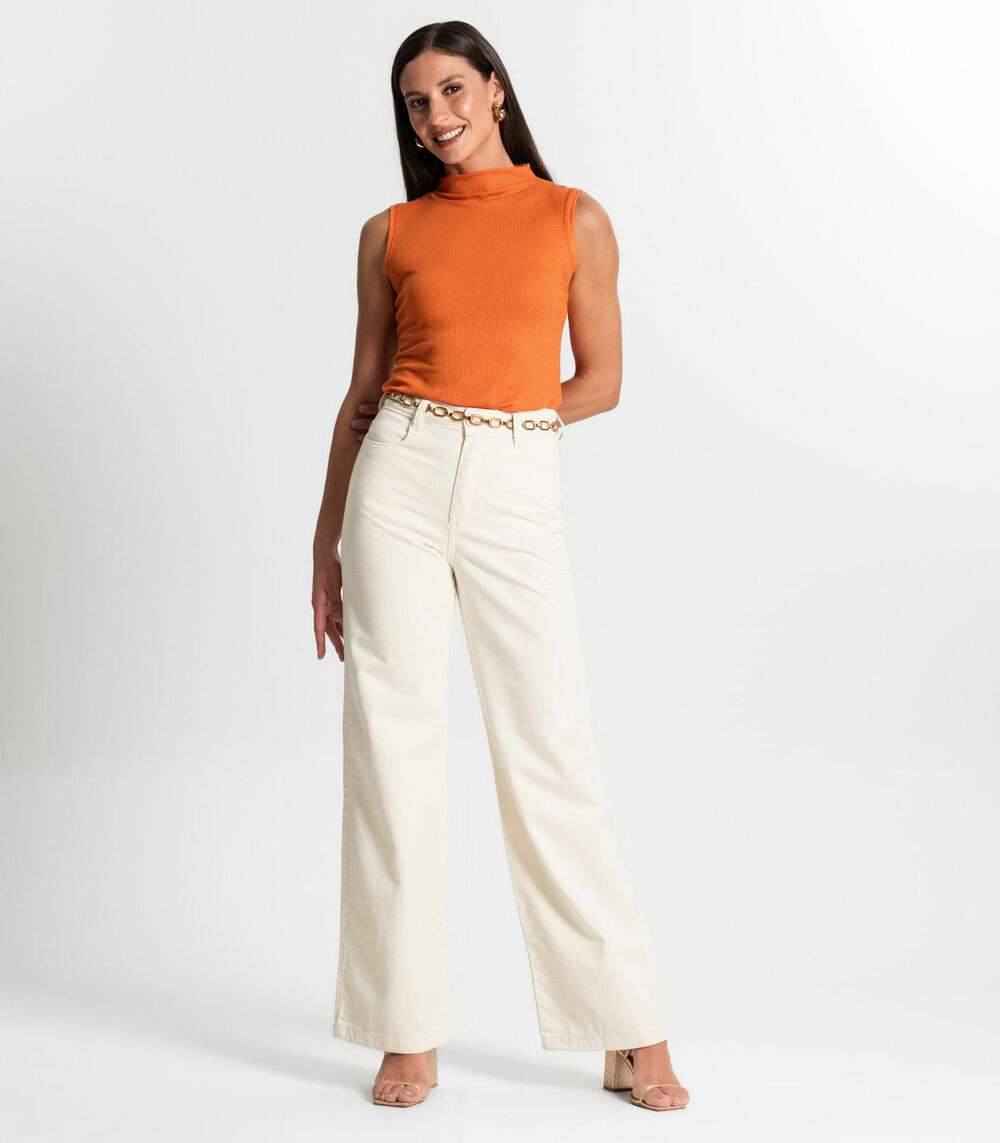 Regata Feminina Em Ribana Canelada Lurex Rovitex Laranja