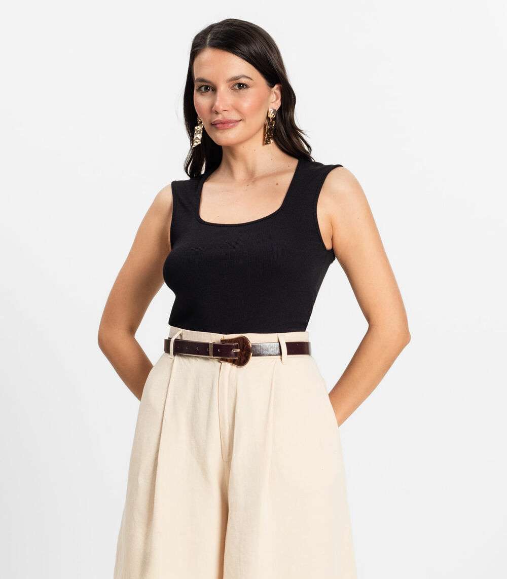 Regata Feminina em Ribana de Viscose Rovitex Preto