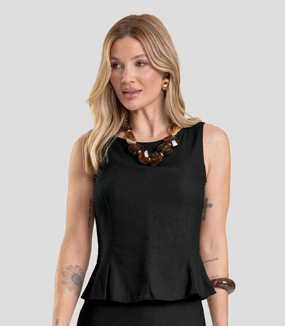 Regata Feminina em Tecido Linho Dianna Preto