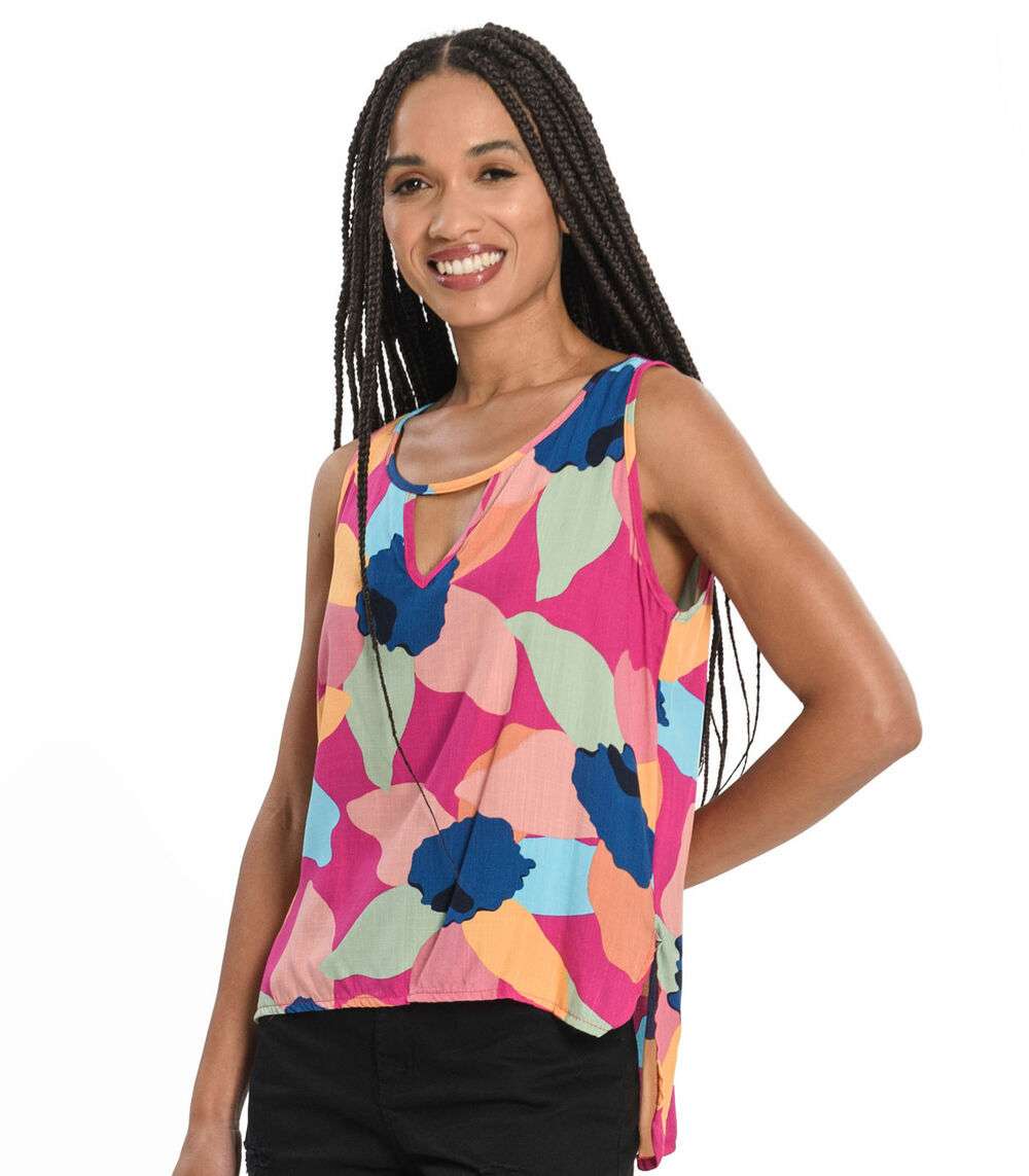 Regata Feminina Flores Assimétrica Rovitex Rosa