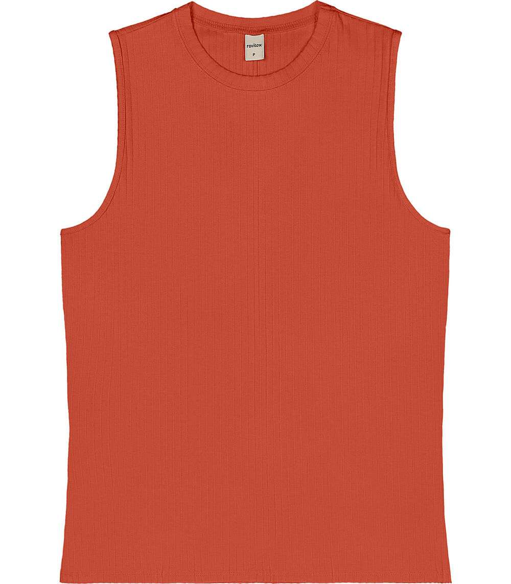 A regata confeccionada em ribana canelada é uma peça confortável e elegante. Com seu tecido macio e maleável, ela se ajusta perfeitamente ao corpo, valorizando a silhueta. A plaquinha de metal, um detalhe sofisticado, adiciona um toque de glamour à peça. Versátil, a regata pode ser combinada com diversas peças, desde calças jeans até saias mais sofisticadas, e é ideal para diversas ocasiões, desde um passeio no parque até um jantar elegante.