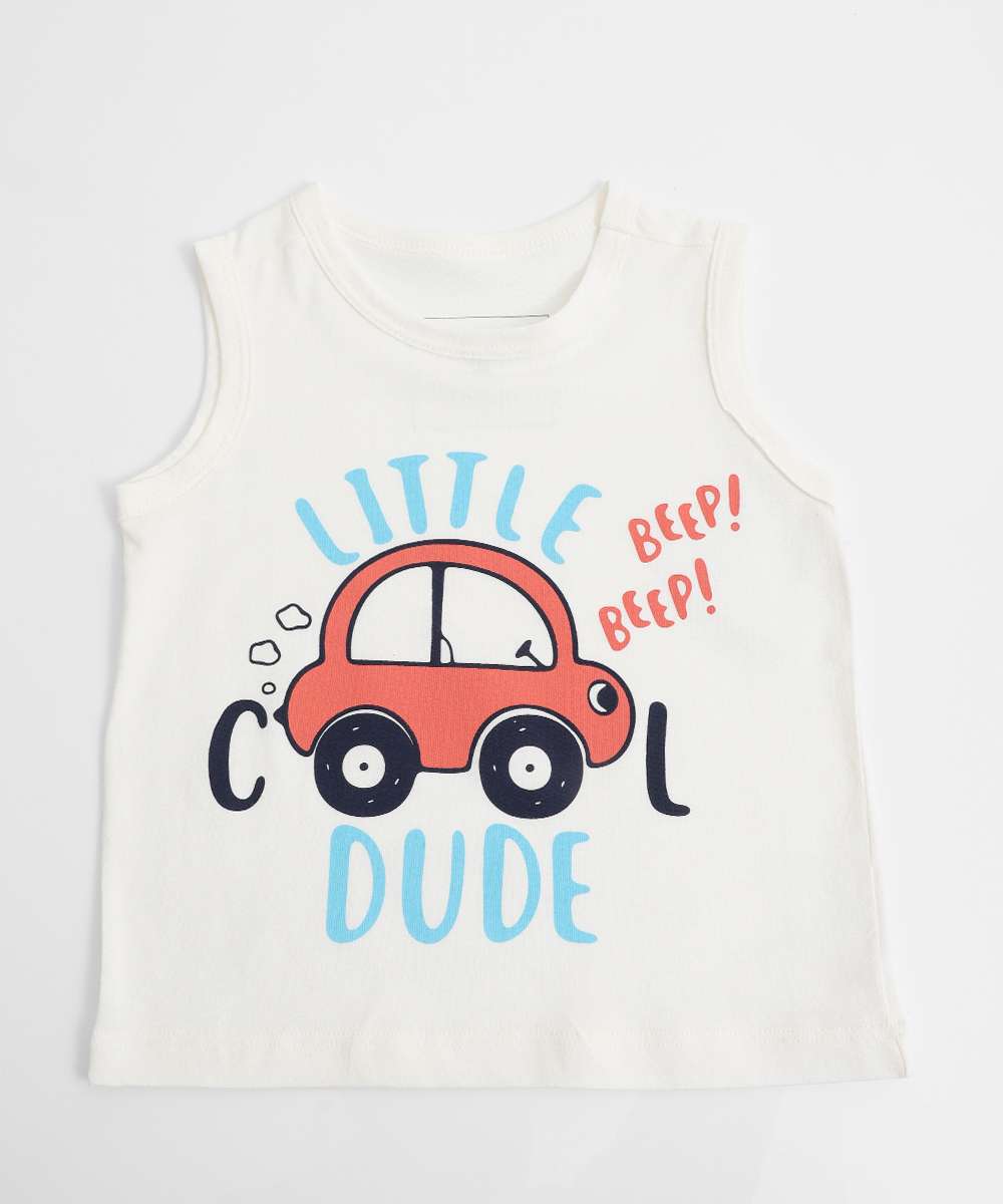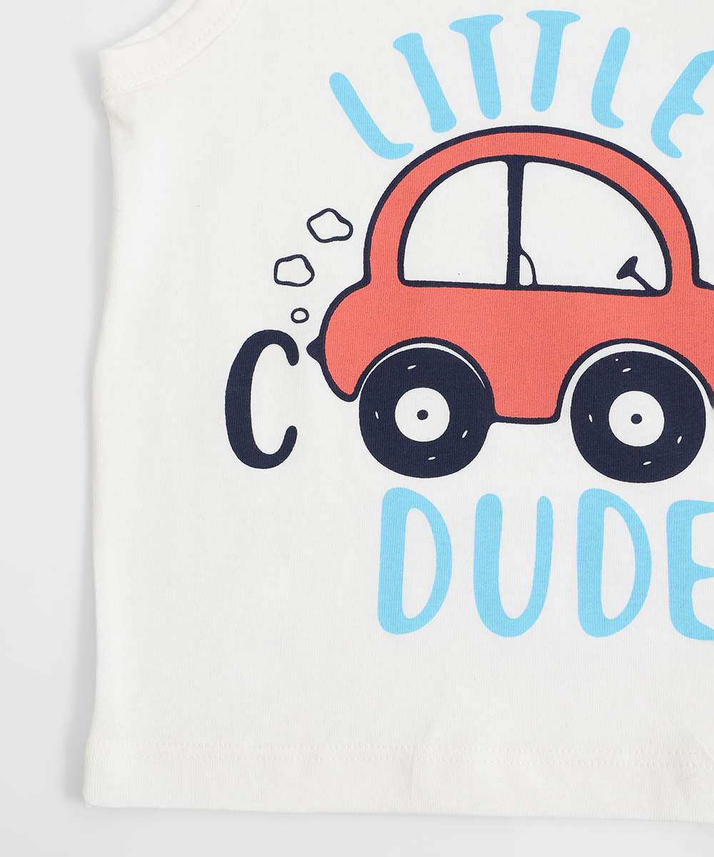 Regata Infantil Estampa Carro MR Tam 1 a 3 Off White
