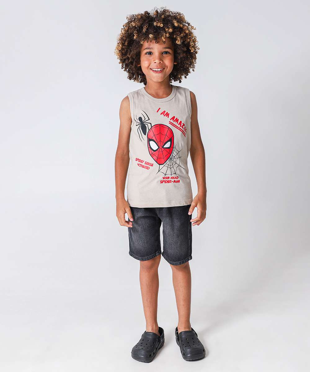 Regata Infantil Homem Aranha Tam 4 a 10 Bege