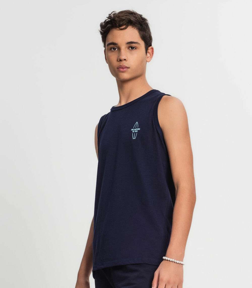 A Regata Juvenil Masculina Minty é a peça perfeita para os jovens que buscam um visual despojado e cheio de estilo. Confeccionada em meia malha de alta qualidade, oferece conforto e durabilidade. Seu decote e cavas em friso adicionam um toque de elegância, enquanto a estampa na parte da frente e nas costas, remetendo à praia, acrescenta um charme tropical ao visual. Versátil e fácil de combinar, é ideal para compor looks descontraídos e cheios de personalidade para os dias quentes de verão.