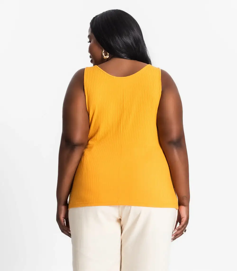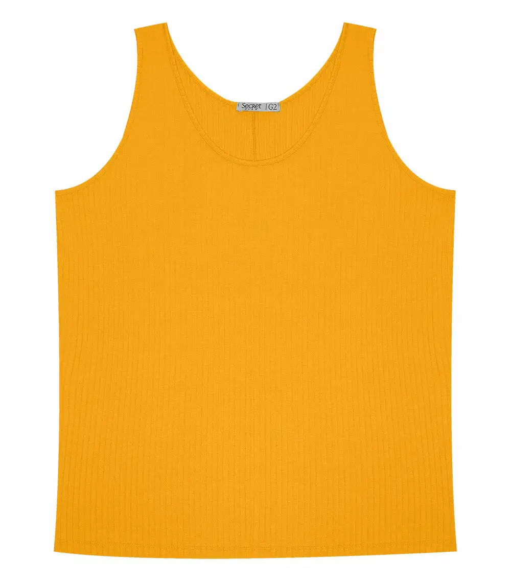 Regata Plus Size Em Ribana Canelada Secret Glam Amarelo