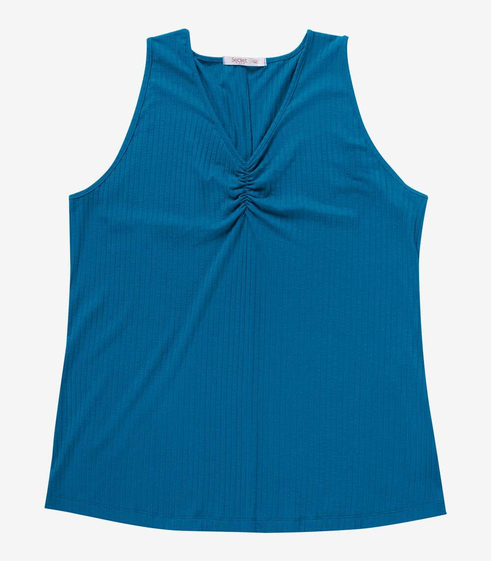 Regata Plus Size Em Ribana Canelada Secret Glam Azul