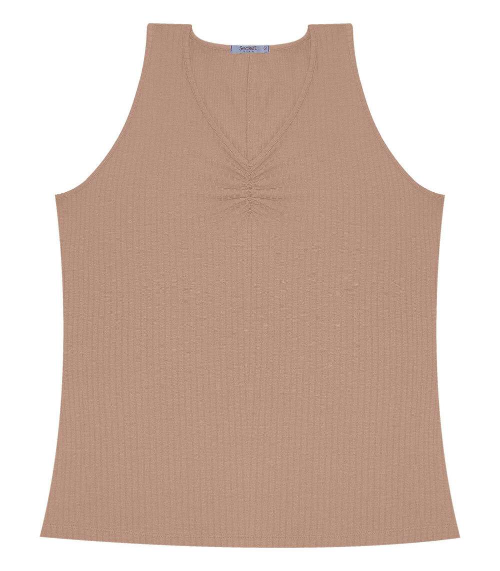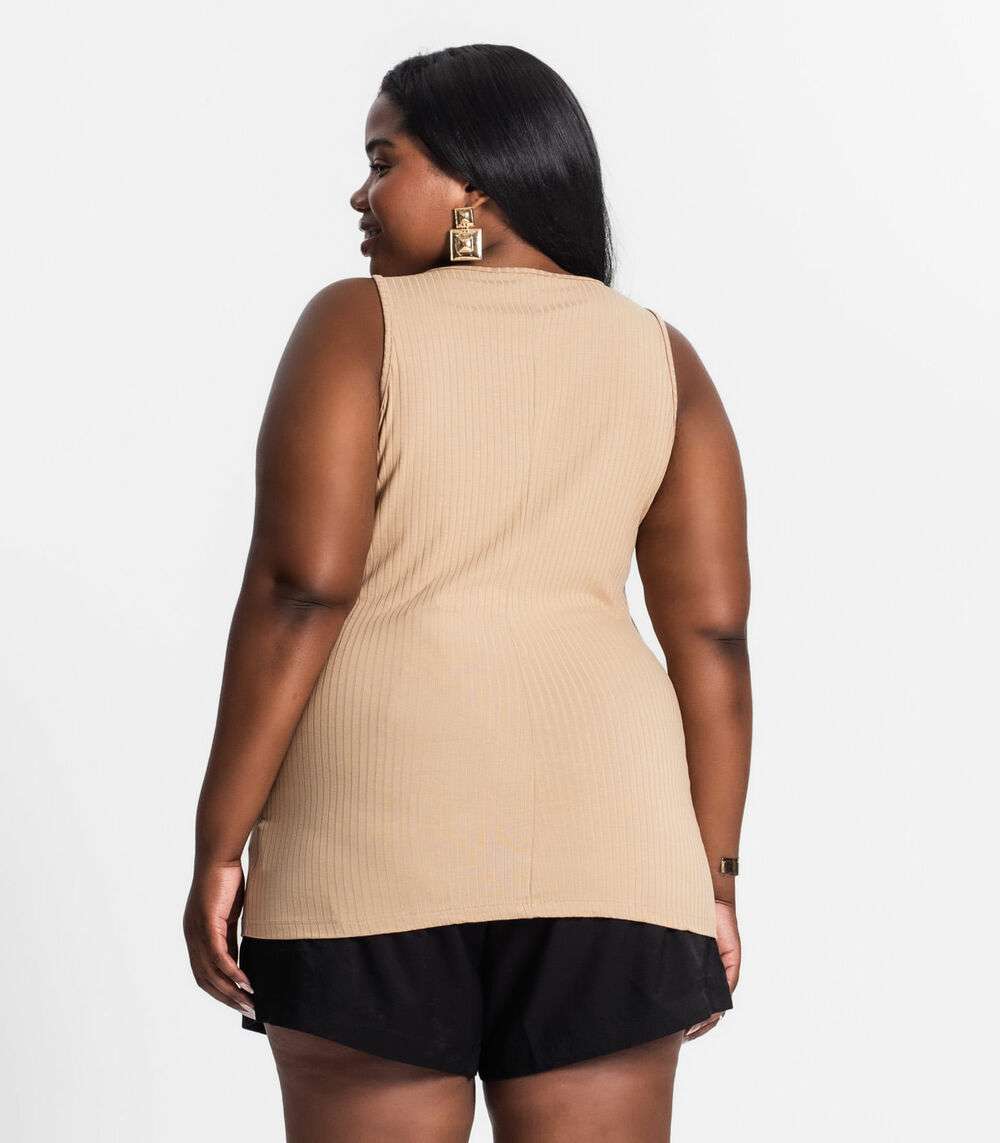 Regata Plus Size Em Ribana Canelada Secret Glam Marrom