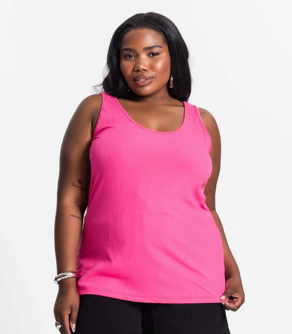 Regata Plus Size Em Ribana Canelada Secret Glam Rosa