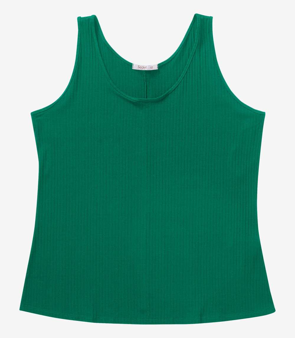 Regata Plus Size Em Ribana Canelada Secret Glam Verde