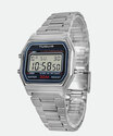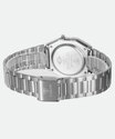 Relógio feminino com sistema digital indicando as horas, minutos e segundos. Caixa em metal com vidro em cristal mineral pino para ajuste de horas. Mostrador personalizado com alarme, calendário diário, iluminação noturna e cronômetro. Pulseira em aço trabalhado com fechamento por gancho.