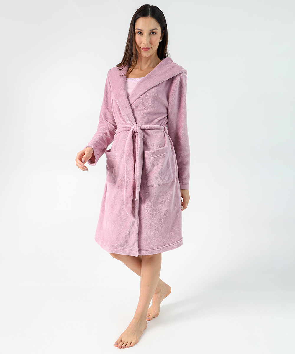 Roupão Feminino Plush com Capuz Marisa Rosa