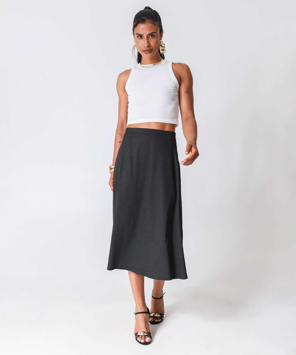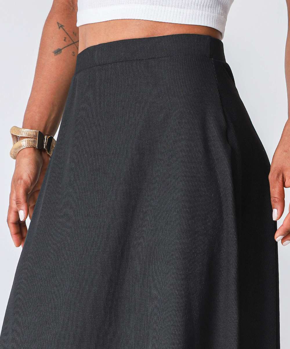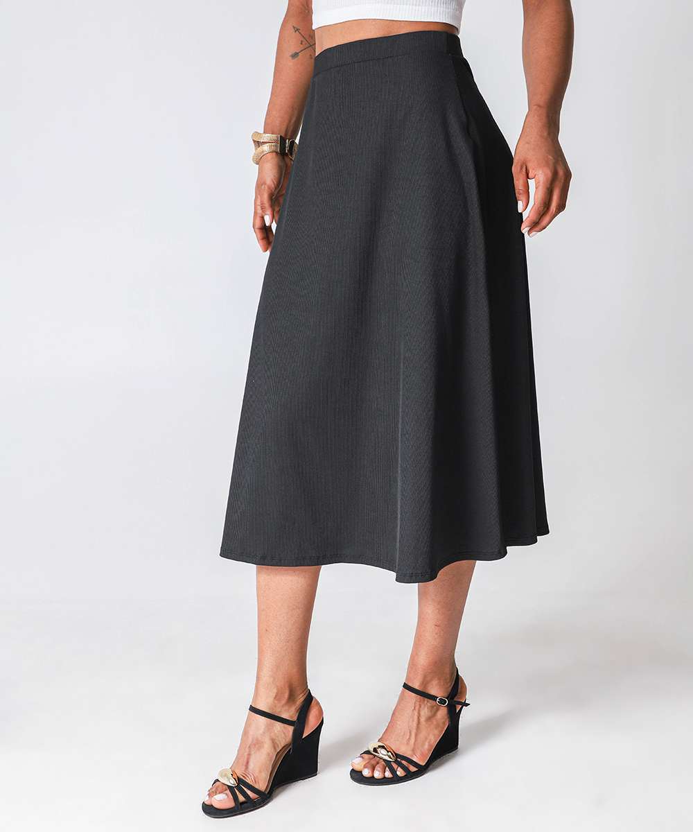 Saia Feminina Midi Evasê Canelada Marisa Preto