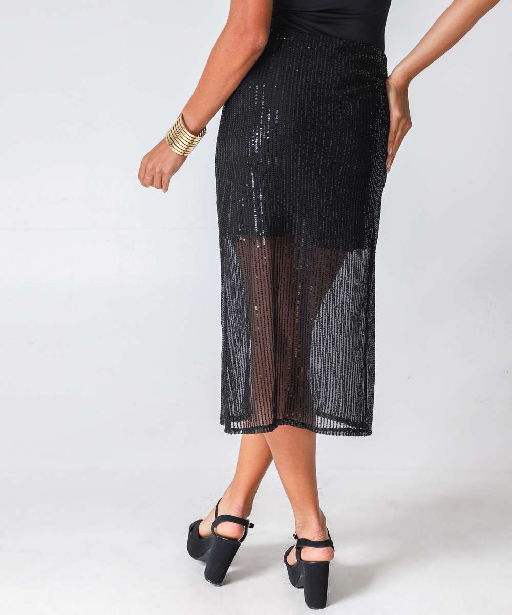 Saia Feminina Midi Reta Paetês Marisa Preta