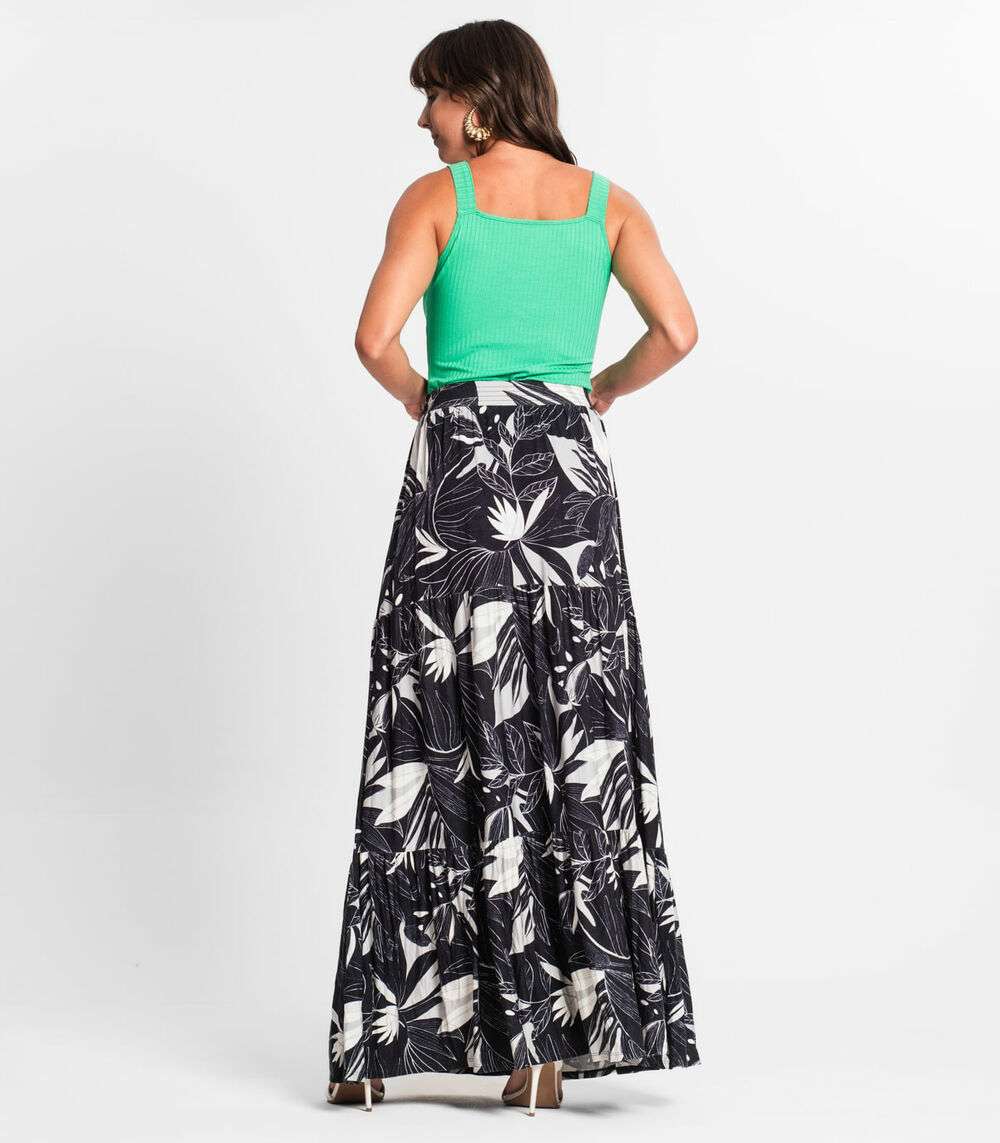 Descubra o encanto da Saia Longa Feminina Estampada Rovitex. Feita em malha visco premiere, oferece conforto e fluidez. Seu cós elástico proporciona ajuste perfeito, enquanto a estampa rotativa acrescenta estilo. Os recortes com franzidos adicionam movimento e sofisticação, ideal para ocasiões diversas.