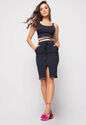 Saia Midi Com Bolso Malha Canelada Preta
