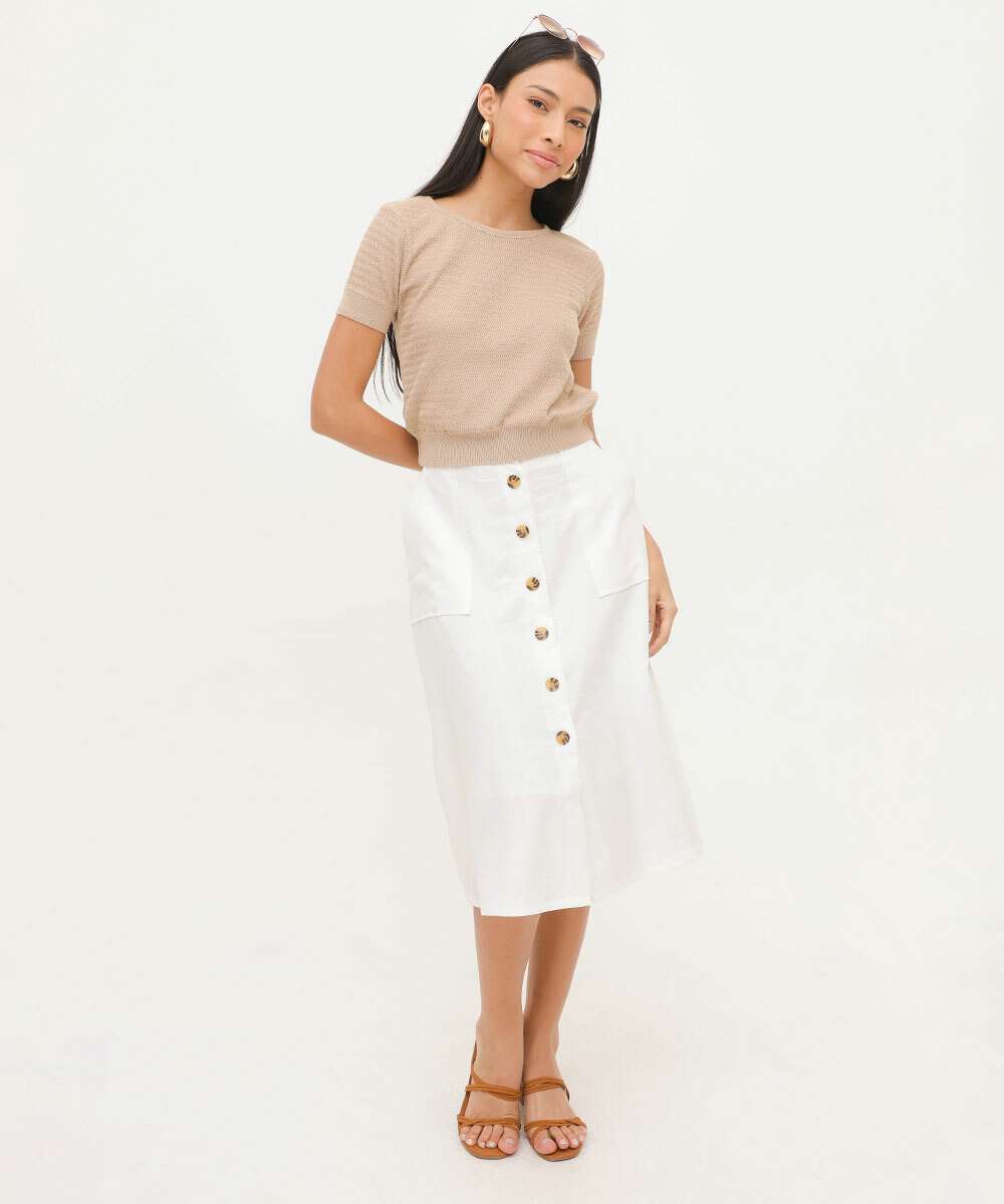Saia Midi Feminina Cintura Alta Fenda Marisa