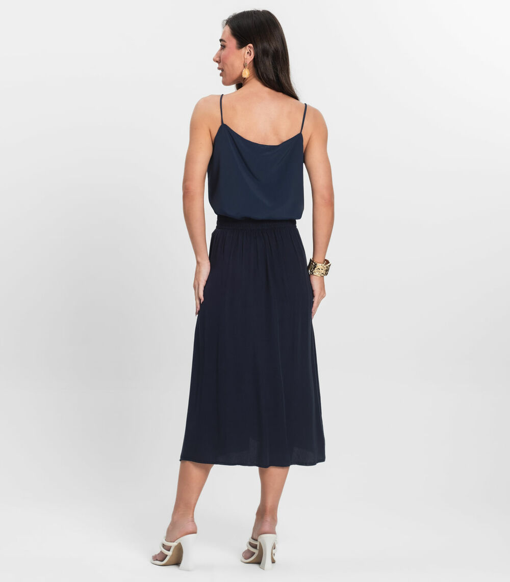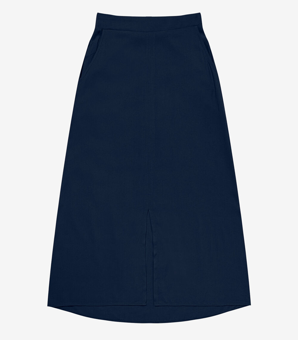 Saia Midi Feminina em Viscose Sarjada Endless Azul