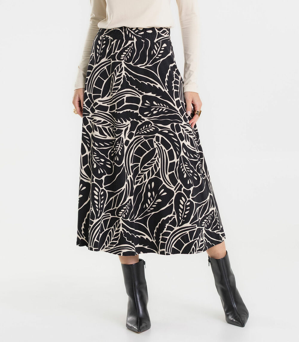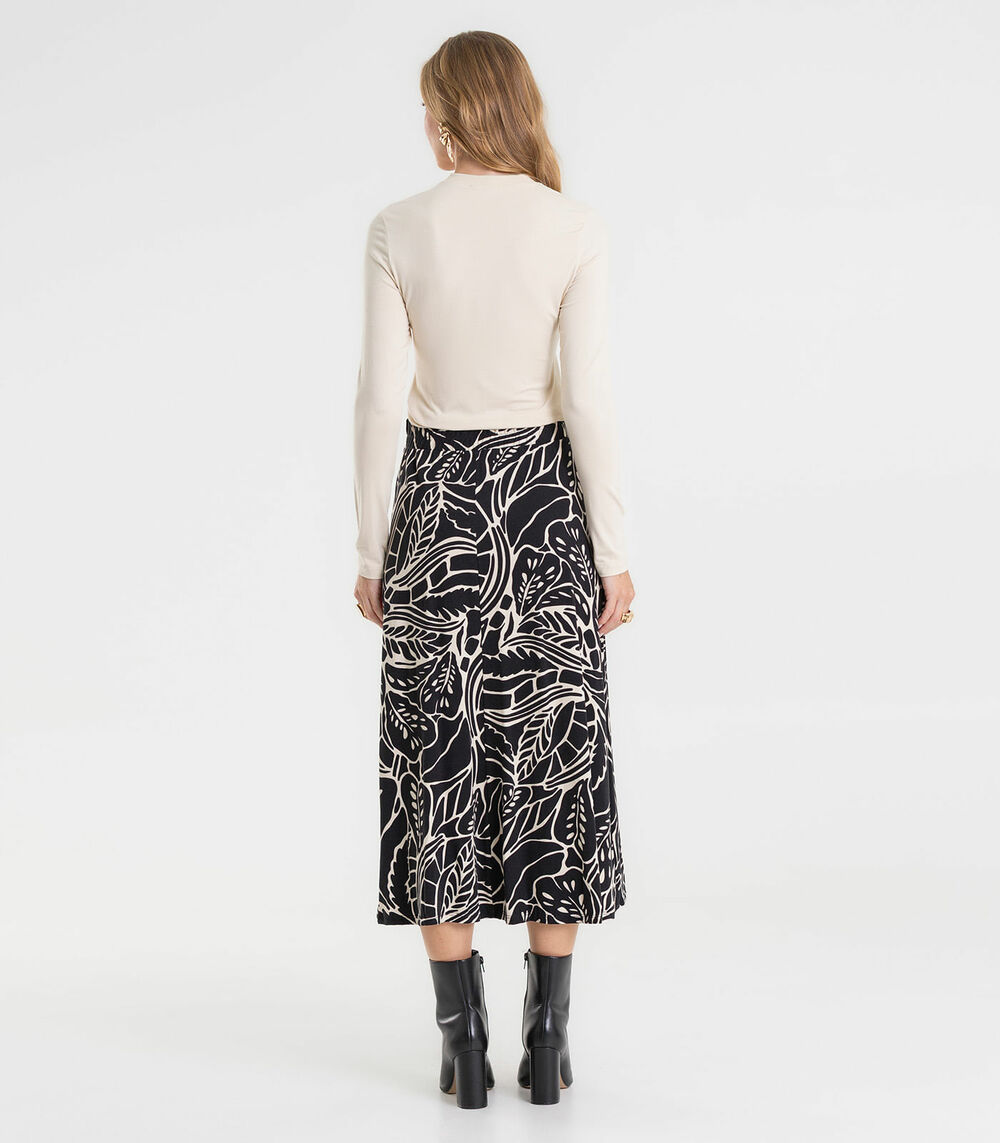 Saia Midi Feminina Em Viscotorcion Rovitex Preto